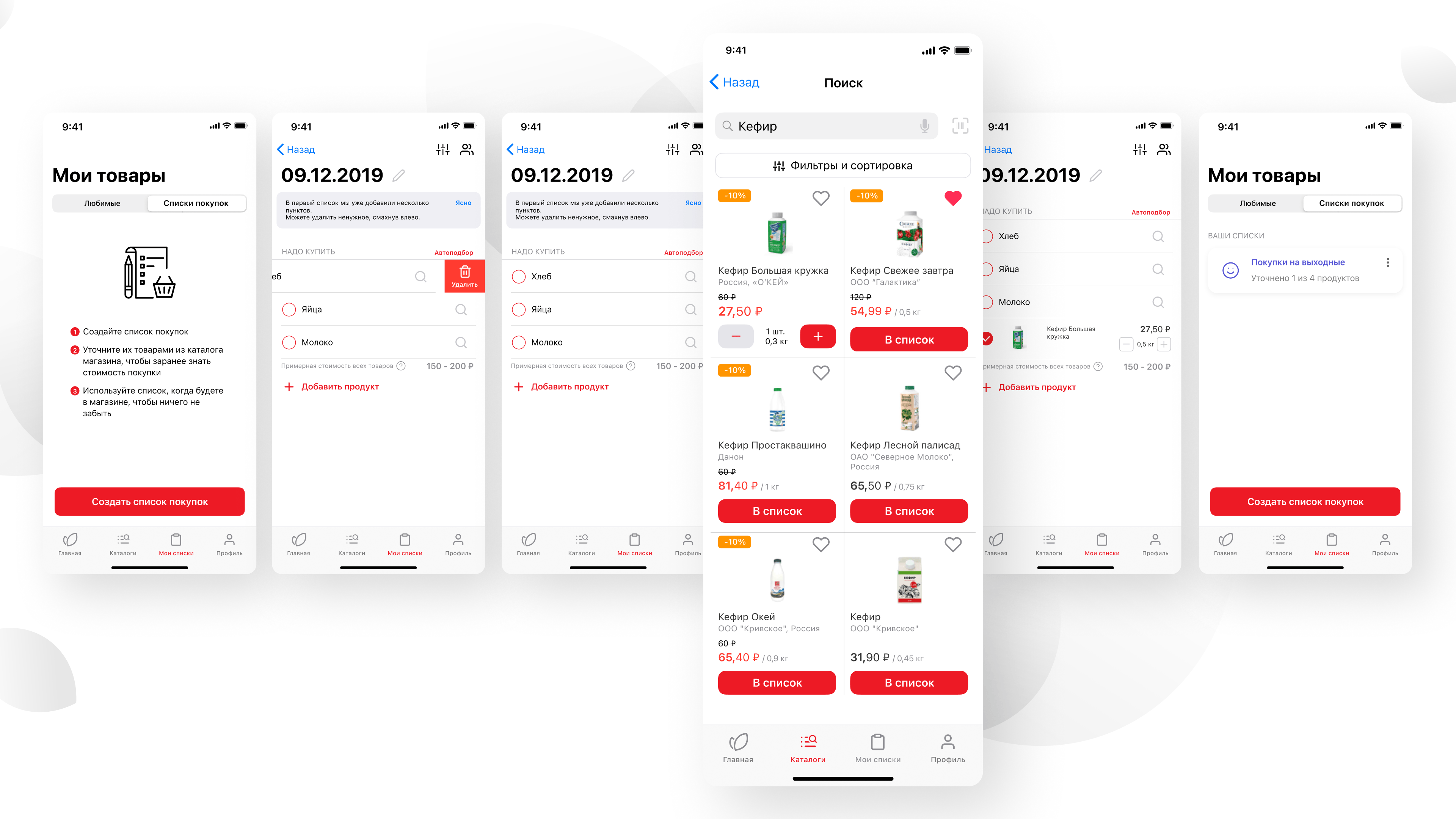 В приложении мы добавили возможность записывать все пожелания по пунктам. А потом — превратить каждый пункт в конкретную позицию. Кликаешь по «Молоку», и в приложении запускается поиск по этому ключевому слову с результатами в виде конкретных товаров с ценами.