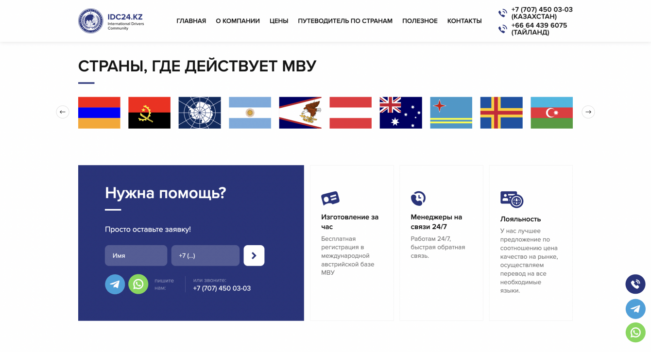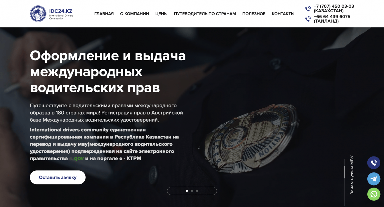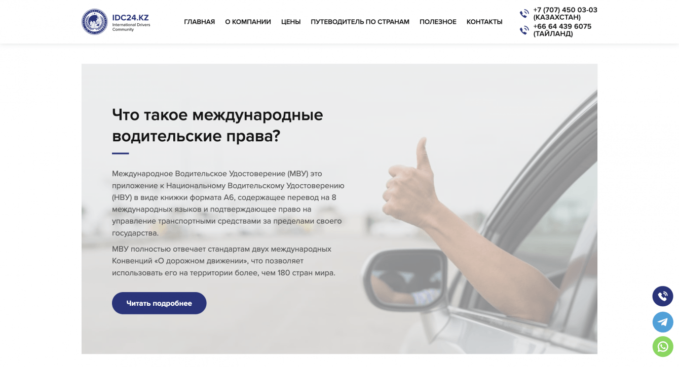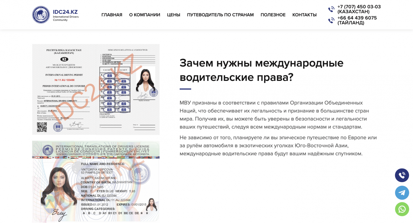 - Создание отдельных страниц для описания услуг IDC, включая информацию о процессе получения международных водительских удостоверений и преимуществах их использования.