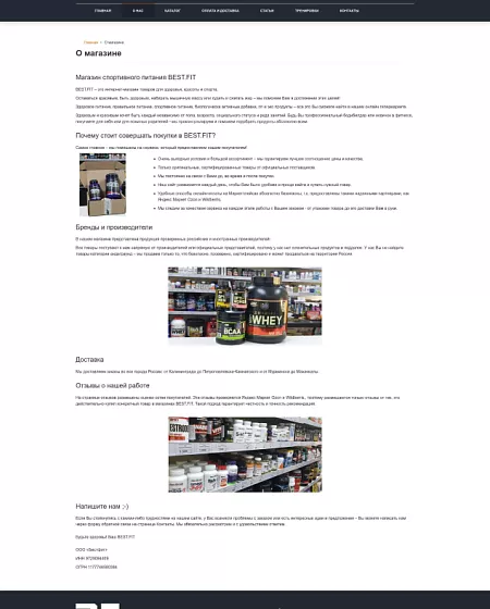 Наш заказчик специализируется на продаже спортивного питания.