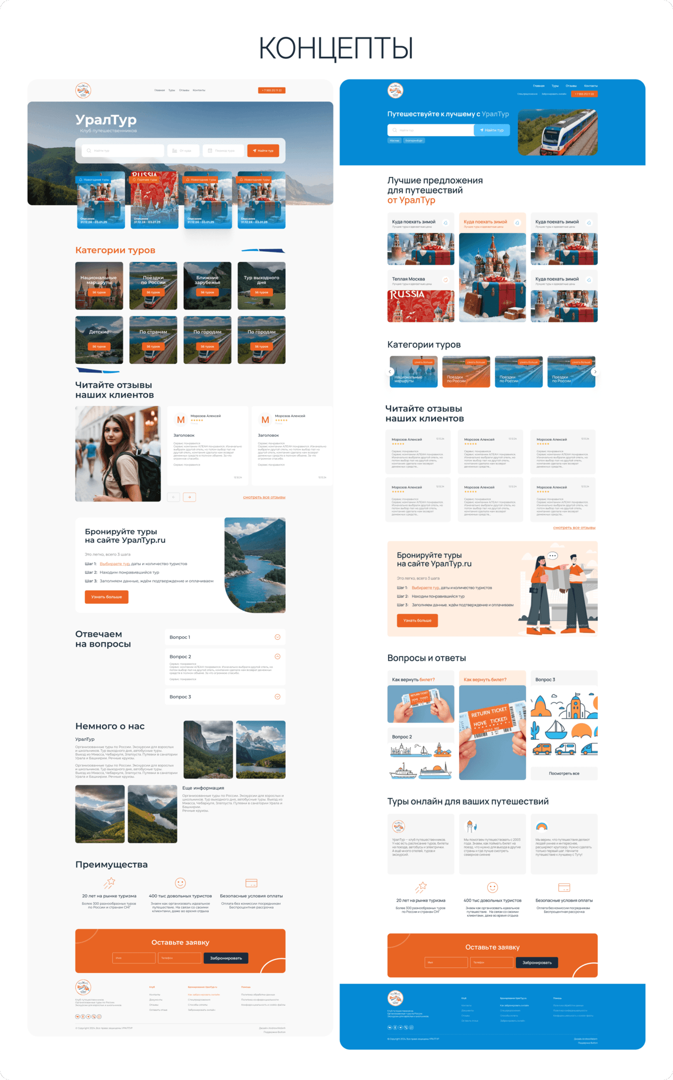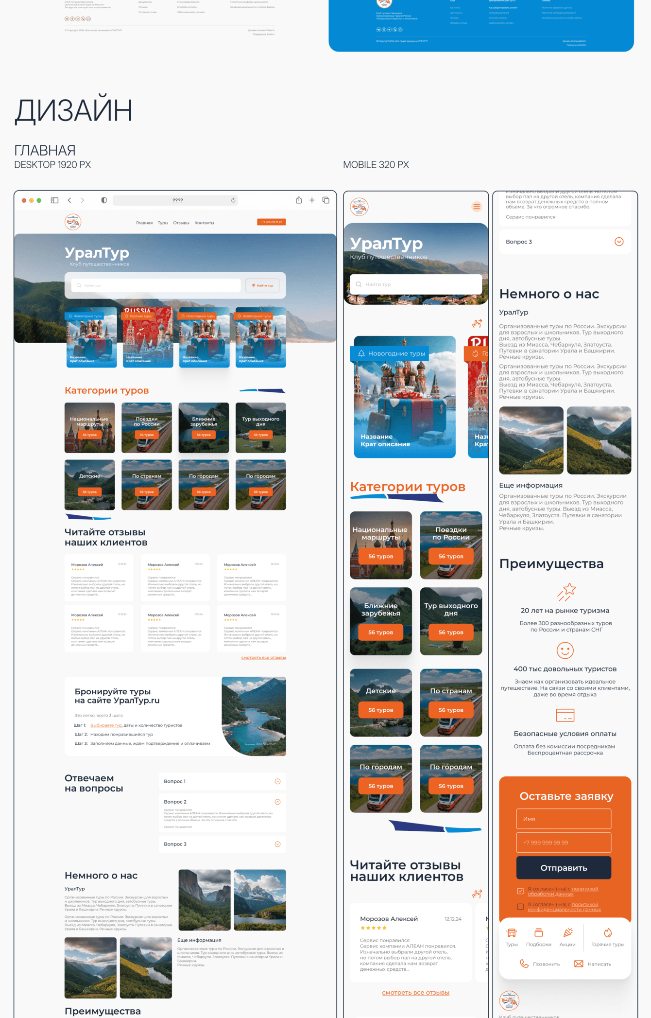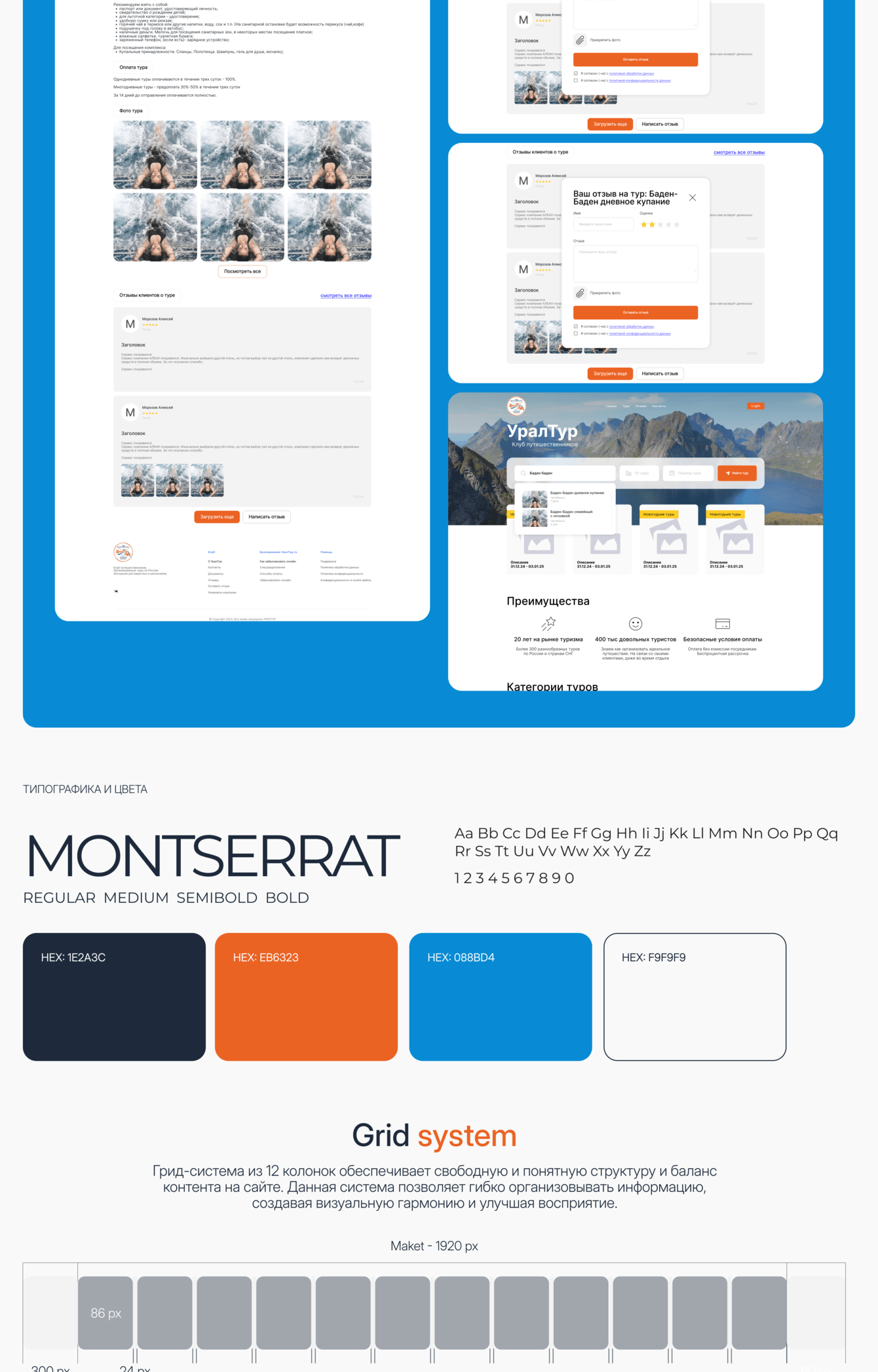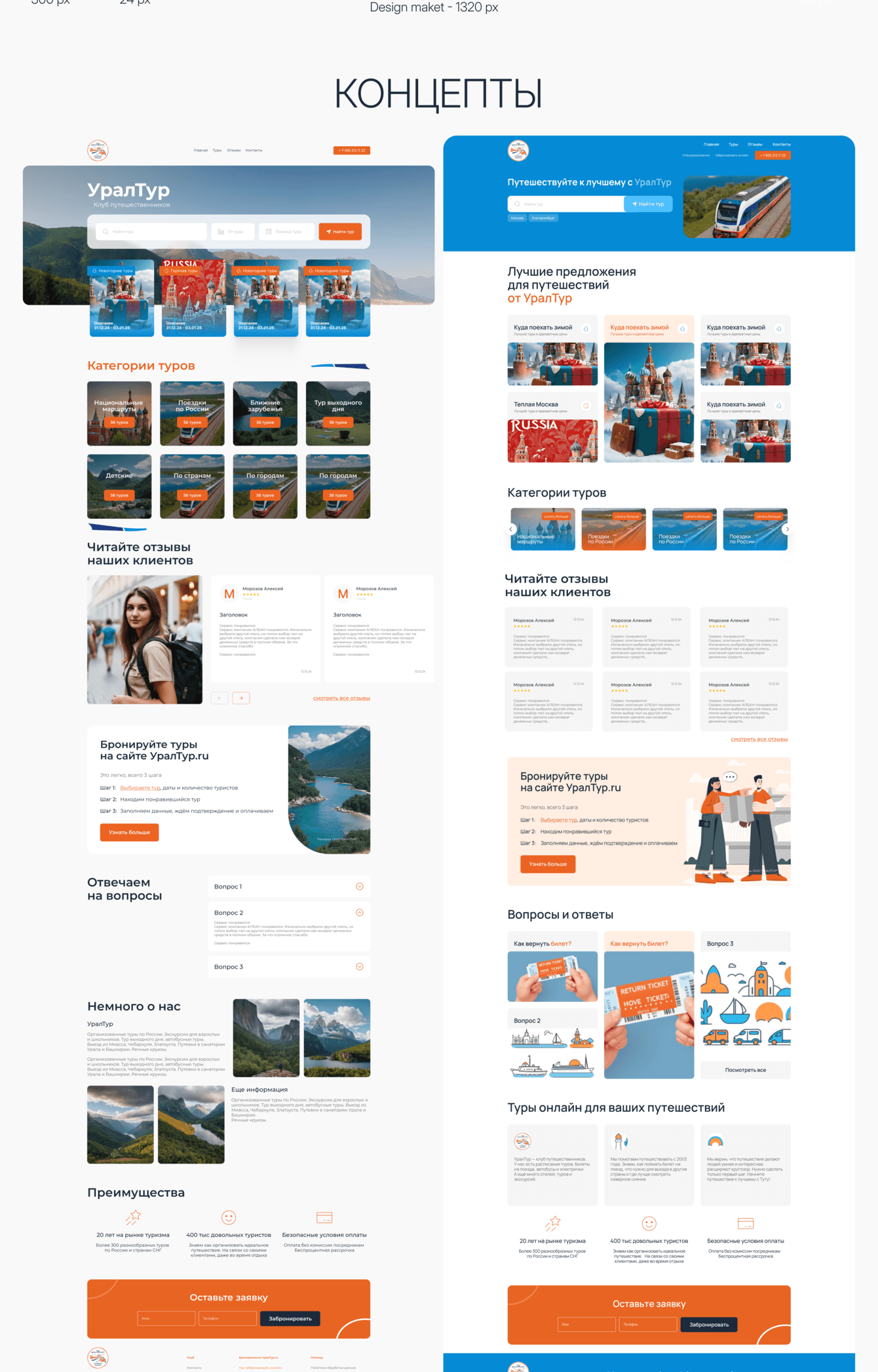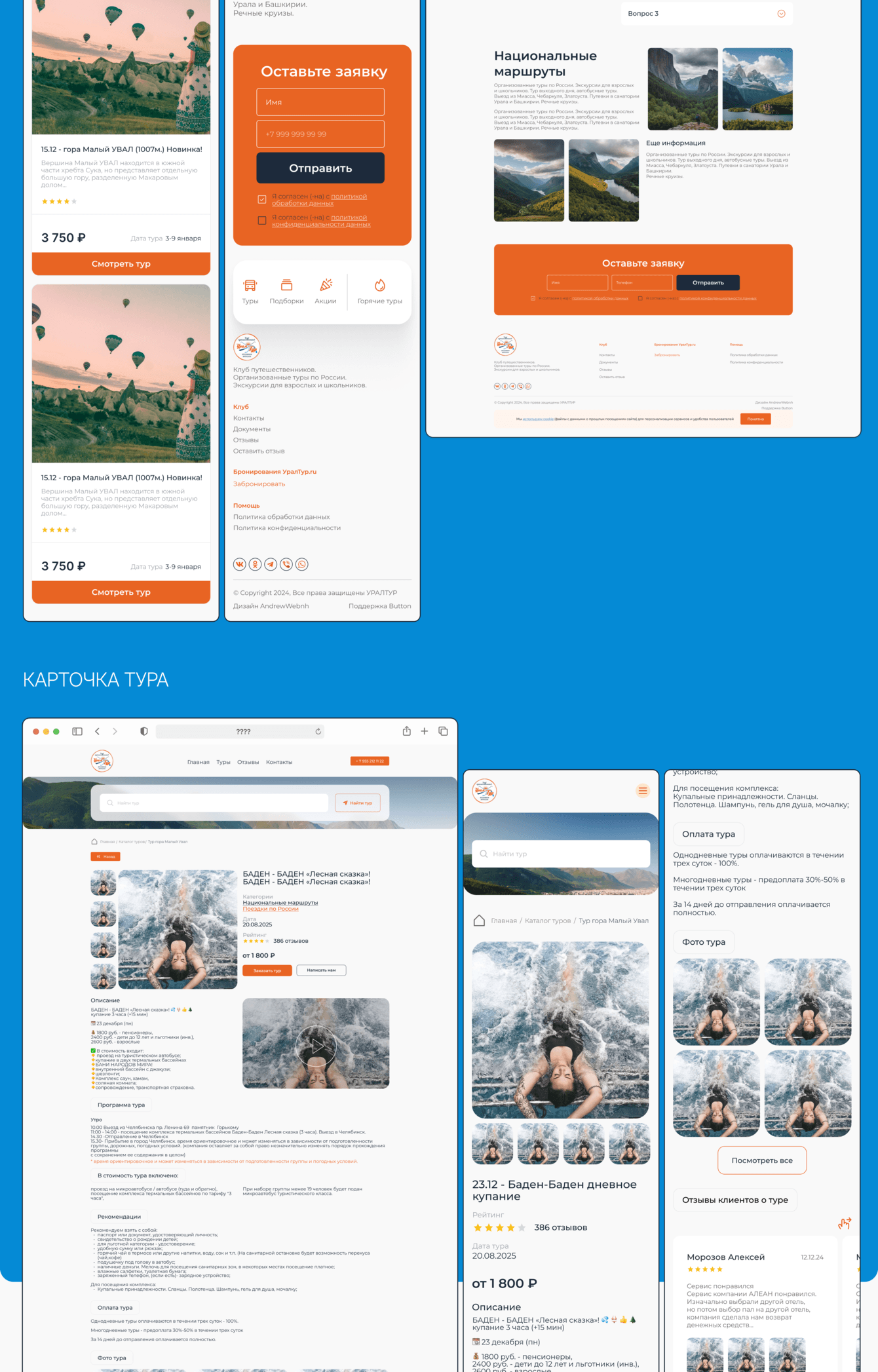 — на сайте гармонично показать каталог туров, специальные предложения, отзывы клиентов, форму для брони туров, ответы на вопросы, информацию о компании и преимущества с возможностью оставить заявку на бронь;