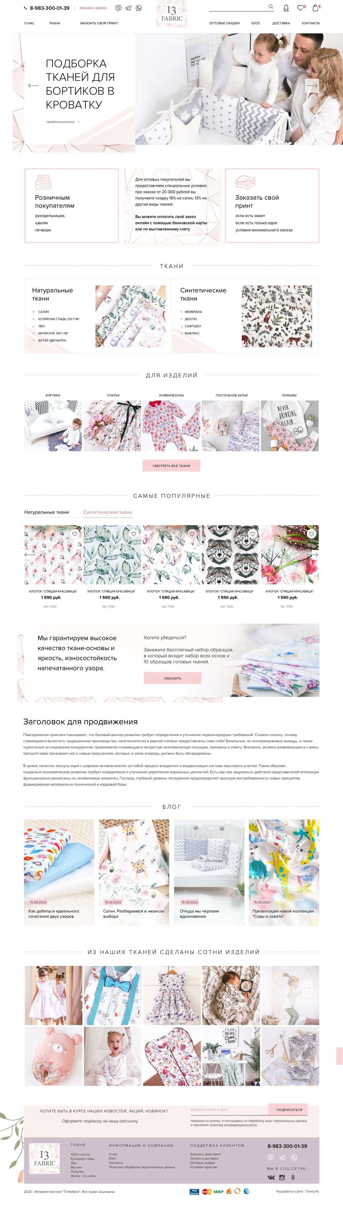 Разработать интернет-магазин тканей с нанесением дизайнерских принтов. В продаже будут показаны как готовые ткани, так и возможность заказать нанесение своего рисунка.