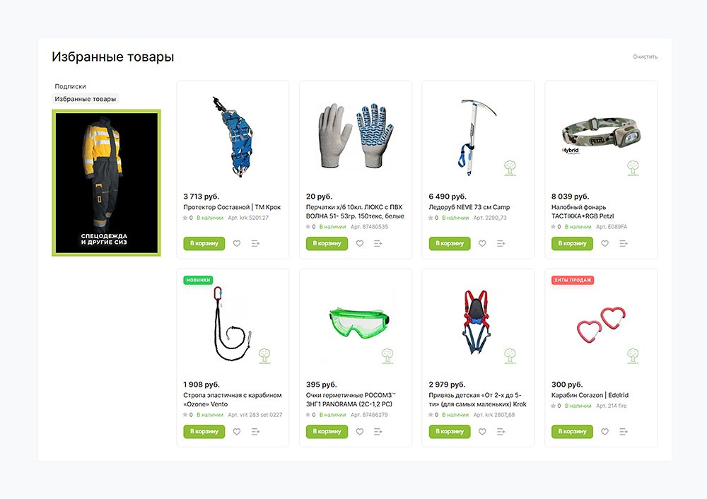 Добавлен раздел с избранными товарами, доступный в личном кабинете.
