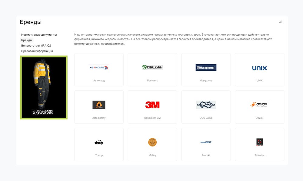Внедрен справочный раздел с F.A.Q., нормативными документами и брендами.
