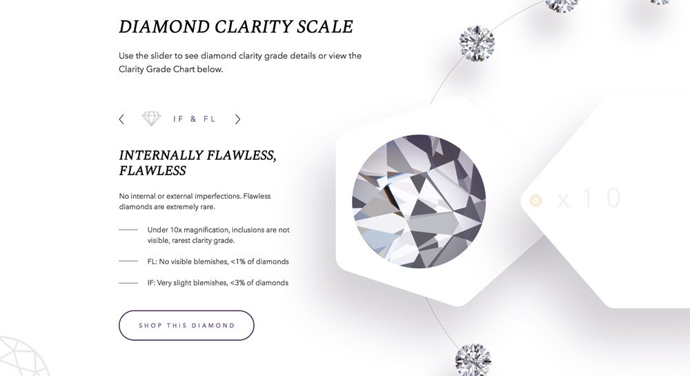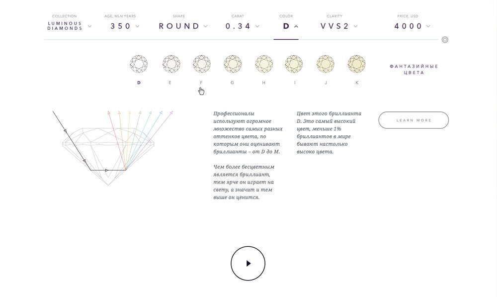 Кроме того, к каждому драгоценному камню генерируется инфографика, которая создает наглядное представление о его спецификации и чистоте. Есть возможность создания 3D моделей бриллиантов с поддержкой пользовательских манипуляций, таких как масштабирование, перемотка, вращение и других. Оплатить покупку возможно разными валютами.