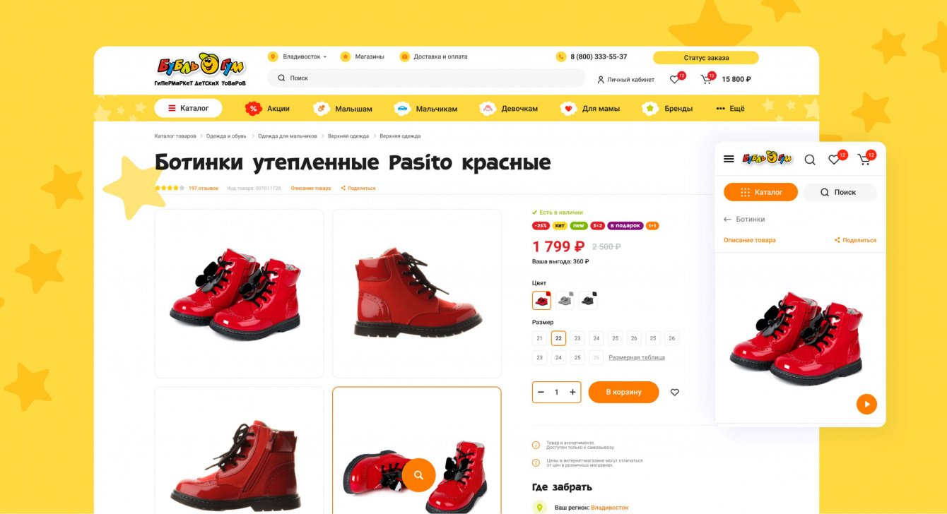 Онлайн-продажи детских товаров с начала пандемии резко выросли. Например, если в 2019 году рост составил 21%, то в 2020 — 76%, то есть более чем в 3 раза. Этому способствовал, в частности, новый формат – Click & collect. Покупатель в этом случае заказывает онлайн, а забирает самостоятельно в магазине. При всех возможностях современной цифровизации, не все компании в секторе E-Commerce развивают онлайн-направление с точки зрения пользовательских предпочтений. Однако именно тенденции в конкретной сфере помогают сделать сервис максимально удобным, а значит, повысить шансы на продажу конкретному потребителю. Бренду «Бубль-Гум» требовался современный ресурс с продуманными интерфейсами и UX-дизайном, основанными на пользовательском опыте и отвечающий потребностям целевой аудитории - современным родителям.