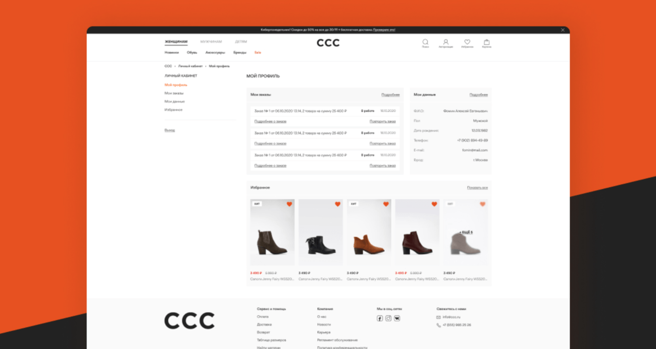 3. Создали личный кабинет покупателя для комфортного заказа. Пользователь может добавлять в избранное понравившиеся товары, а также управлять своими заказами: повторять ранее сделанные, отменять существующие и отслеживать статус заказа.