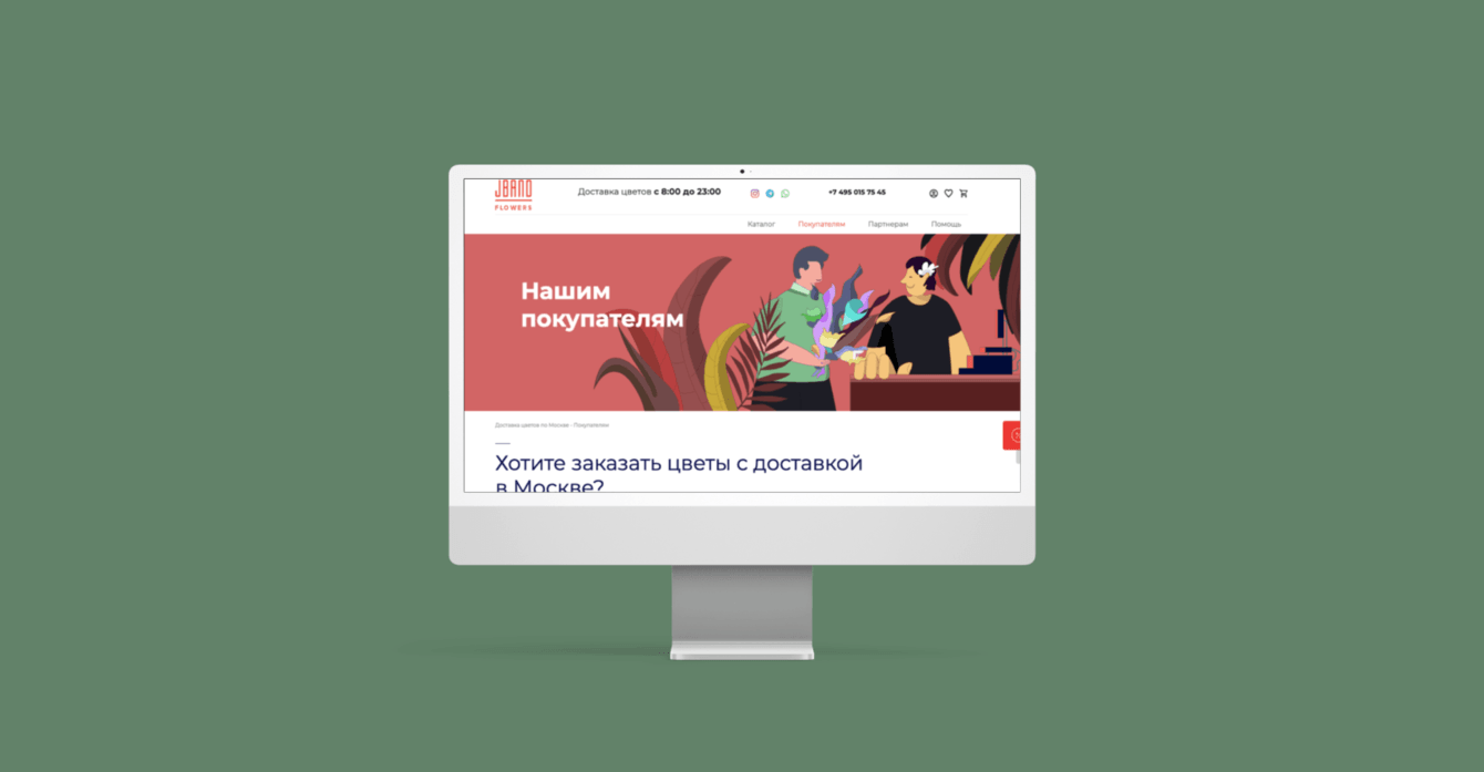 К нам обратился заказчик со следующей задачей — помочь в разработке цветочного интернет-магазина. Бэкенд и API сайта были уже реализованы его командой программистов, мы же занялись разработкой клиентской части.