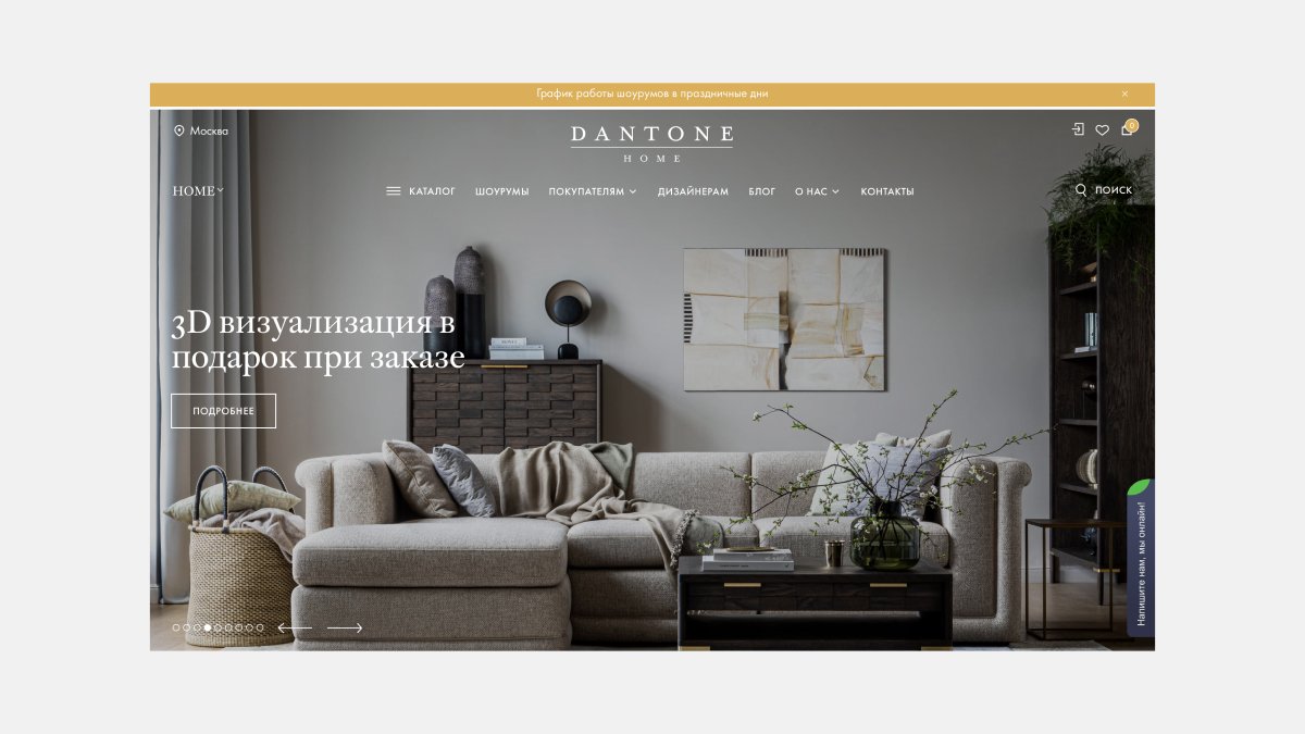 В новом дизайне сайта Dantone Home получилось отразить стиль бренда — синтез классики и contemporary, дизайнерских элементов и уюта.