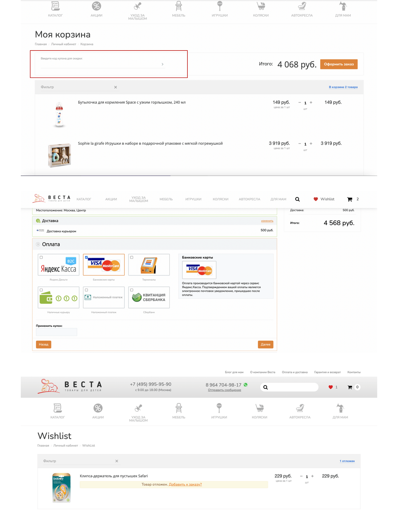Функционал интернет-магазина был ключевой задачей в реализации сайта. Активировали поле для скидочных купонов. Предусмотрели возможность расчета стоимости доставки в зависимости от города назначения.