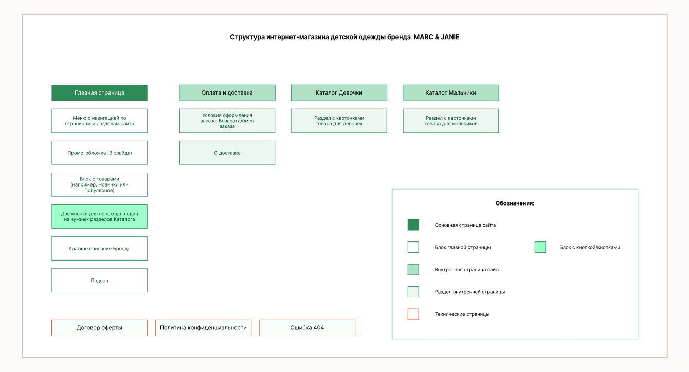 После согласования и доработки я создала структуру будущего сайта.