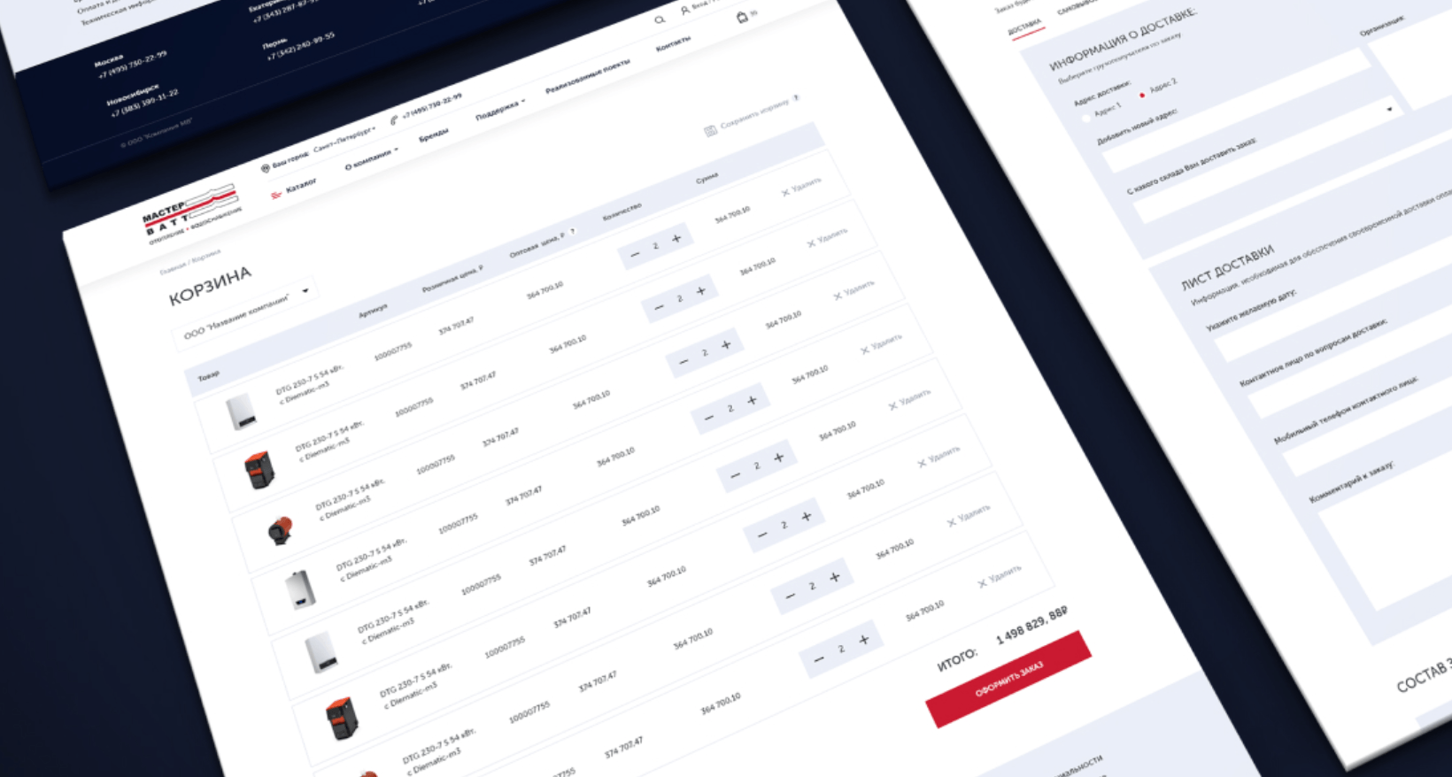 У компании «Мастер-Ватт» в арсенале были промо-сайт и портал. На первом ресурсе клиенты могли узнать информацию о компании: новости, акции, условия сотрудничества и т.д. Портал выполнял функцию интернет-магазина. При этом функционал сайтов был неудобен, сложна навигация тормозила оформление заказа, клиенты часто звонили или писали менеджерам с дополнительными вопросами. Также два разных источника информации увеличивали трудозатраты на обслуживание. У проекта были и другие особенности, которые мы учли при проектировании и запуске сервиса.
