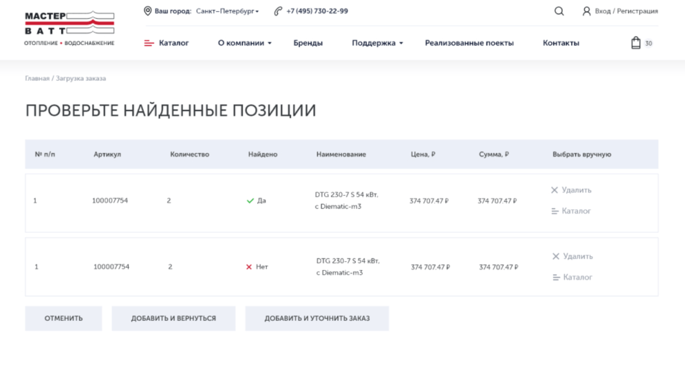 2. Каждый пользователь может сохранять корзины с составом заказа. Это позволяет в дальнейшем быстро оформить заказ с подобным набором товаров повторно для нескольких юридических лиц. Также на сайте можно сделать заказ через загрузку прайс-листа.