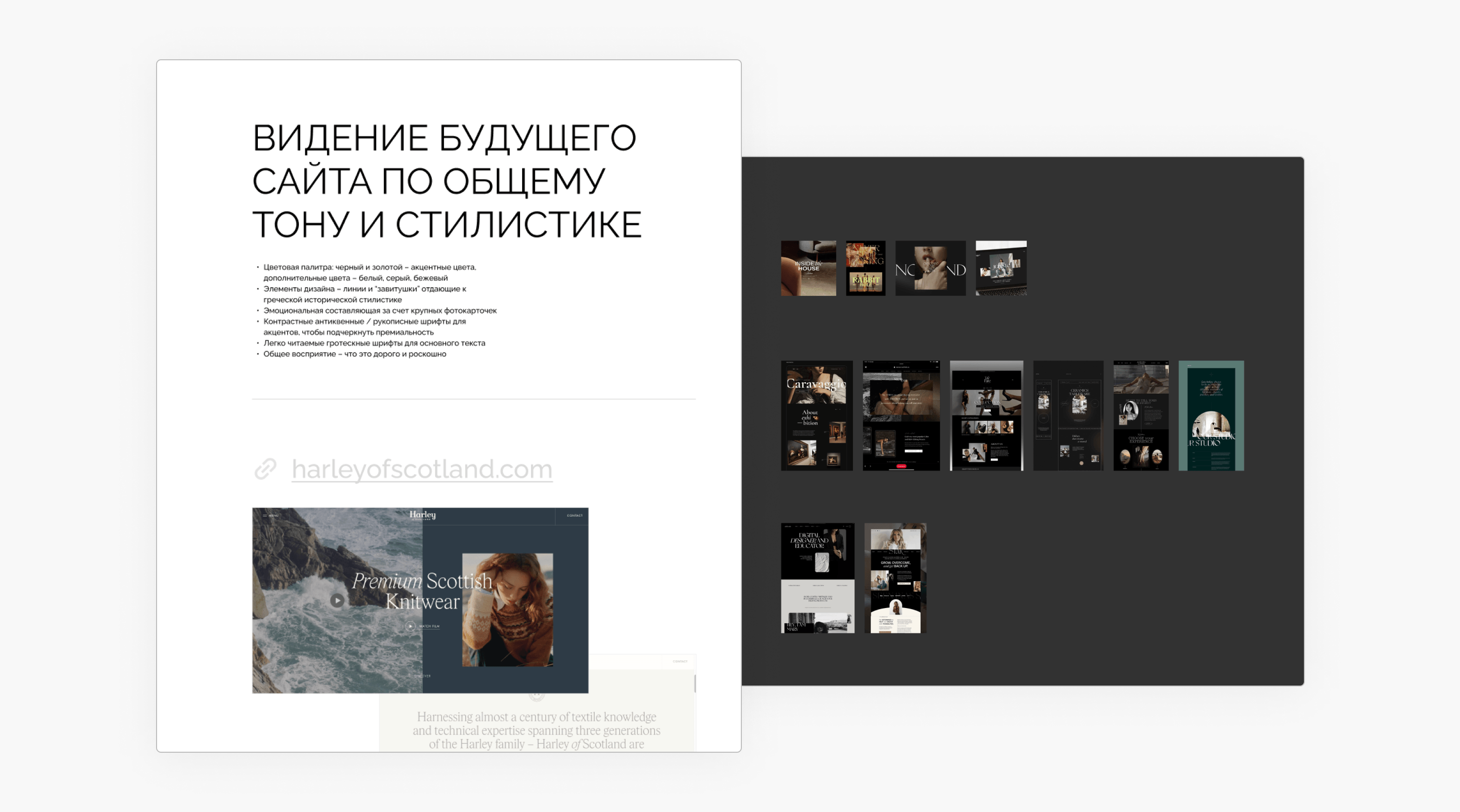 – Подобрали референсы по дизайну, отражающие видение будущего сайта по общему настроению, цветовой гамме и стилистике.