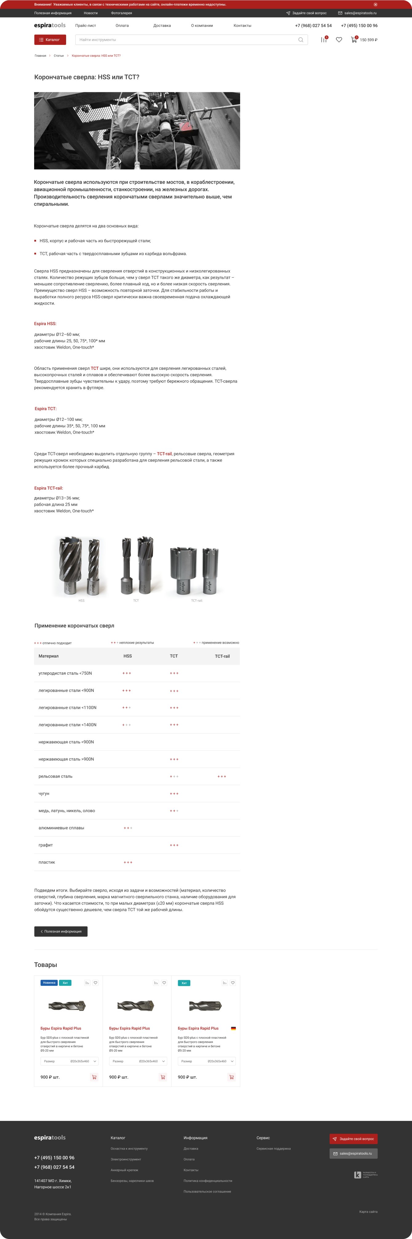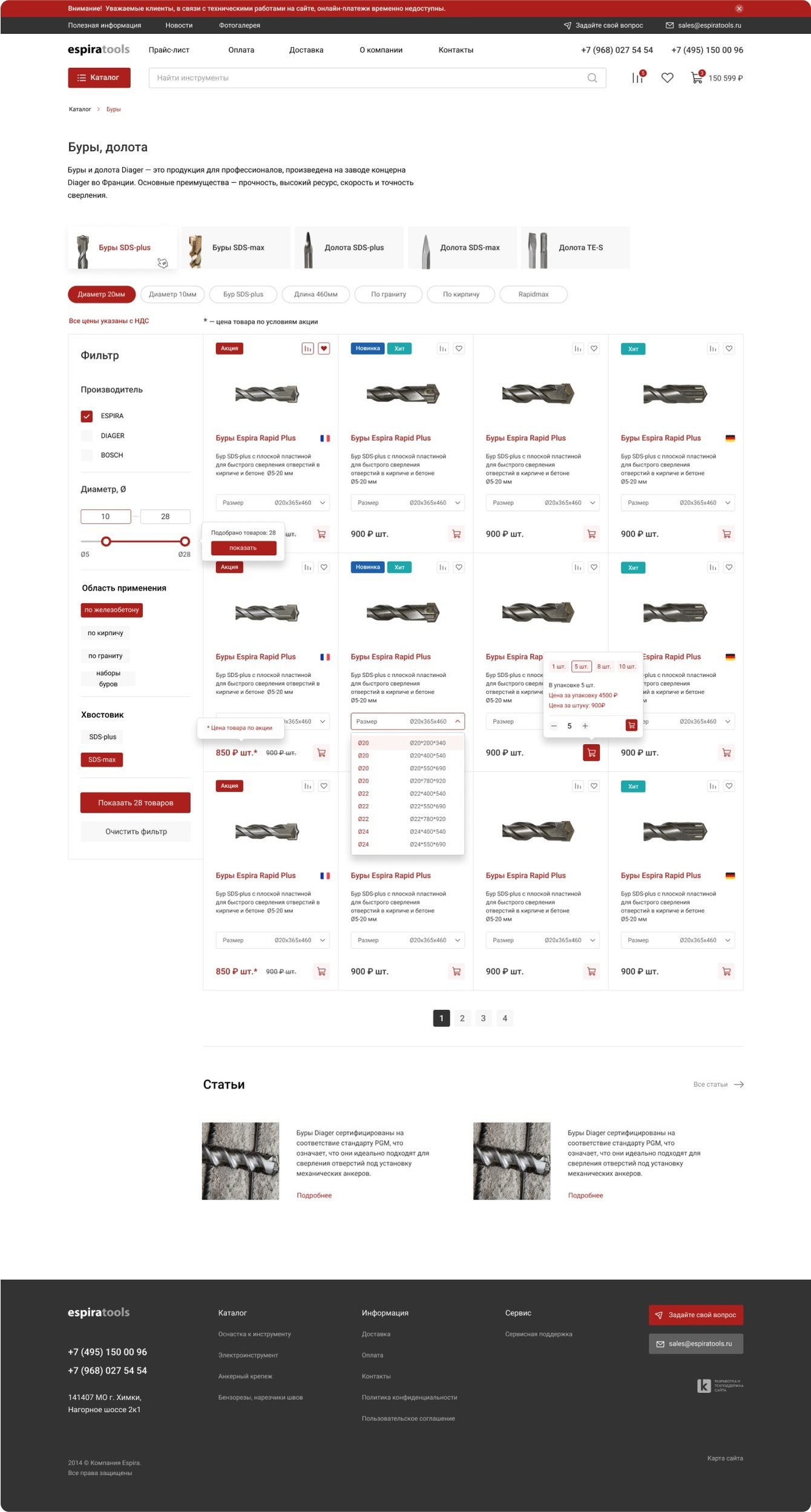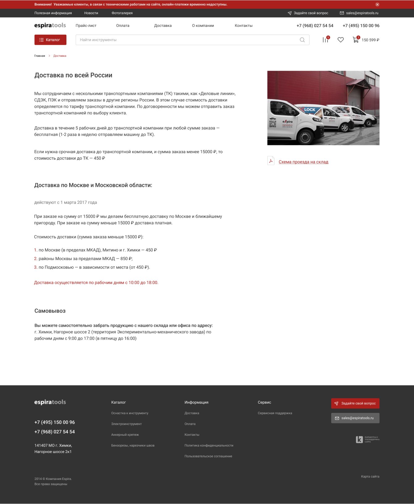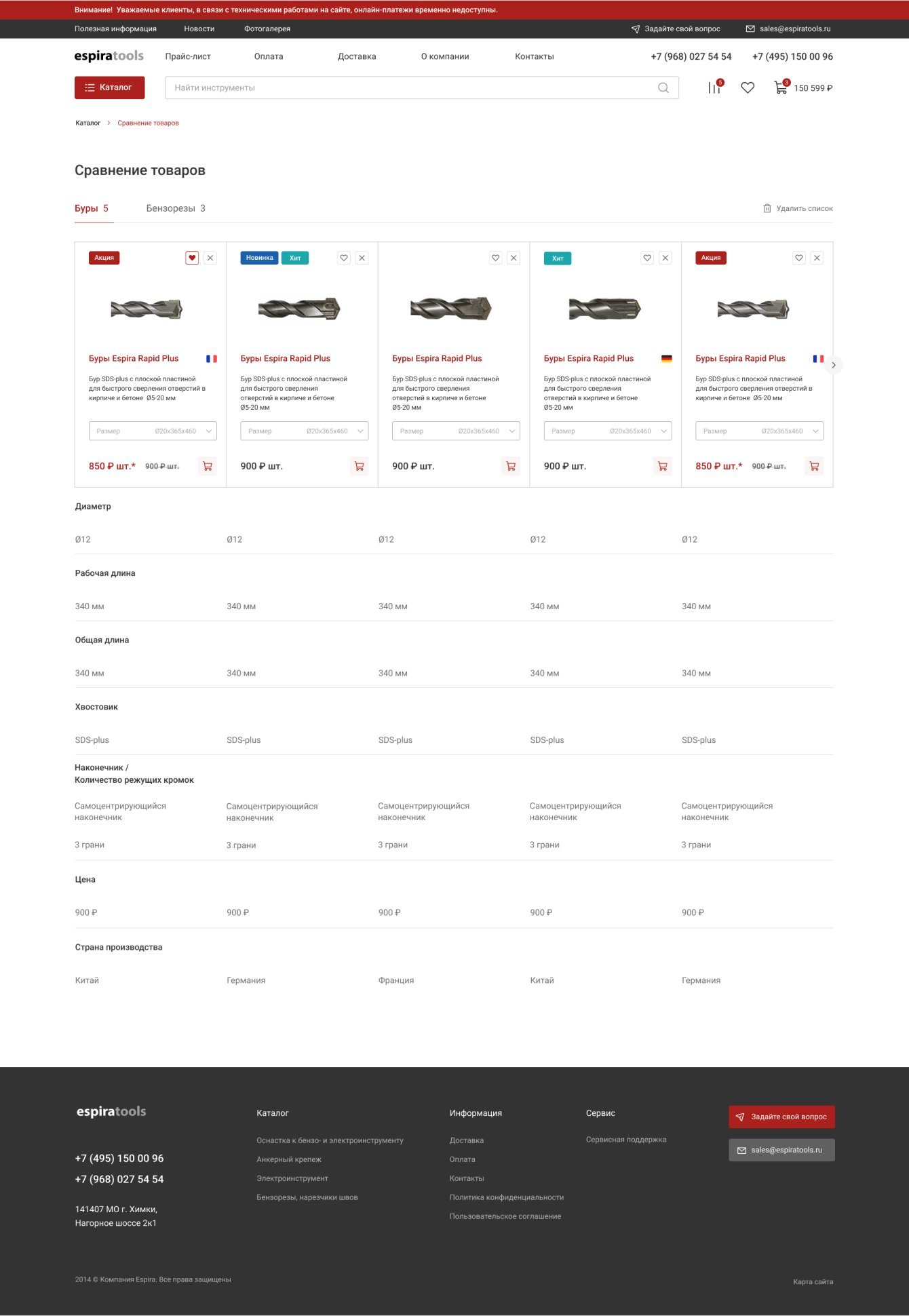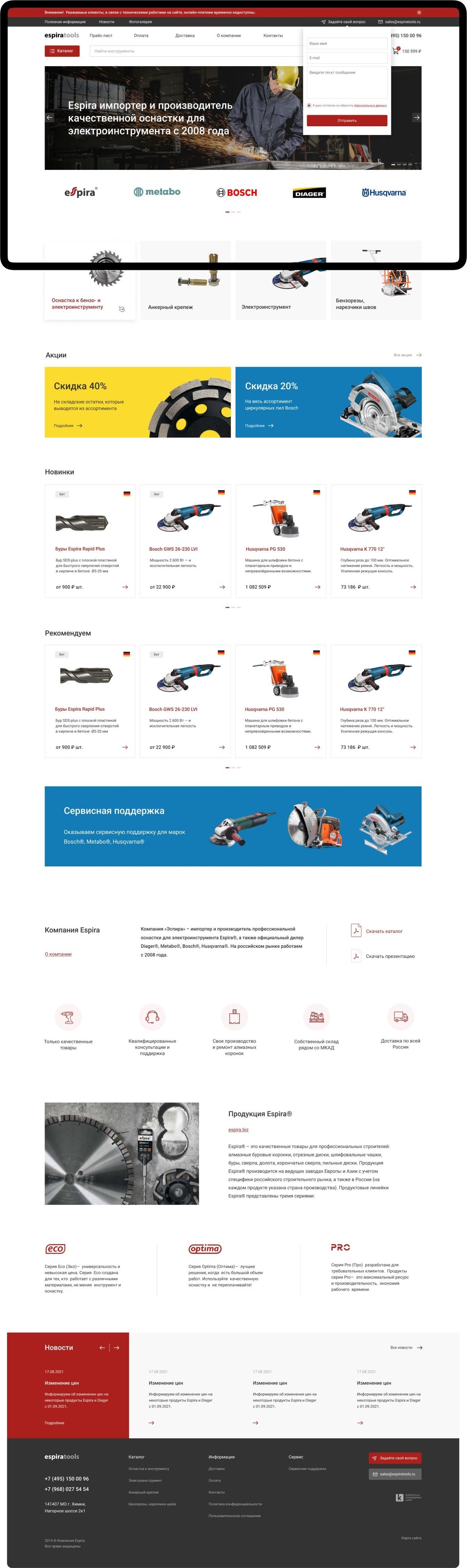 - Редизайн существующего сайта espiratools.ru с целью привлечения новых покупателей