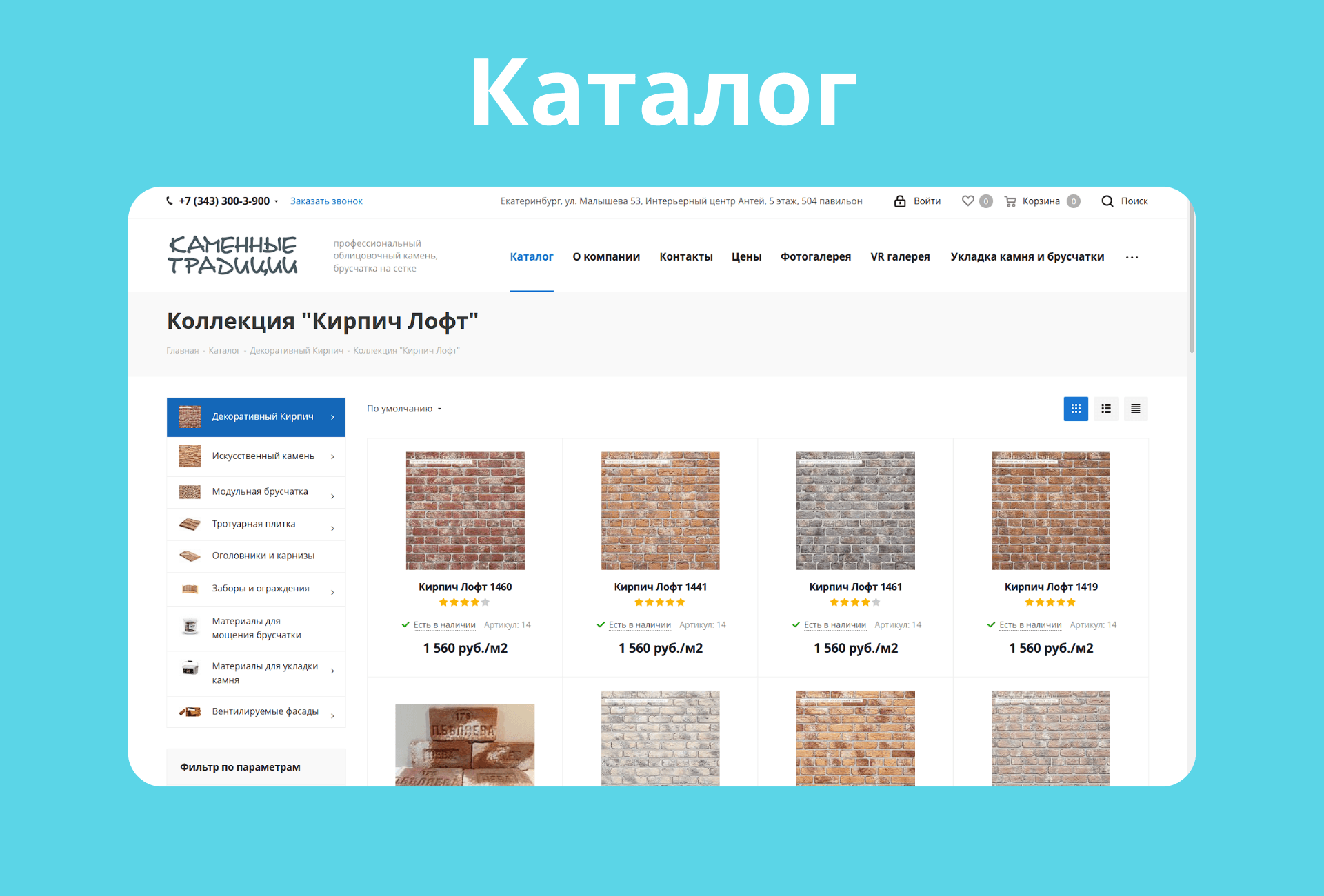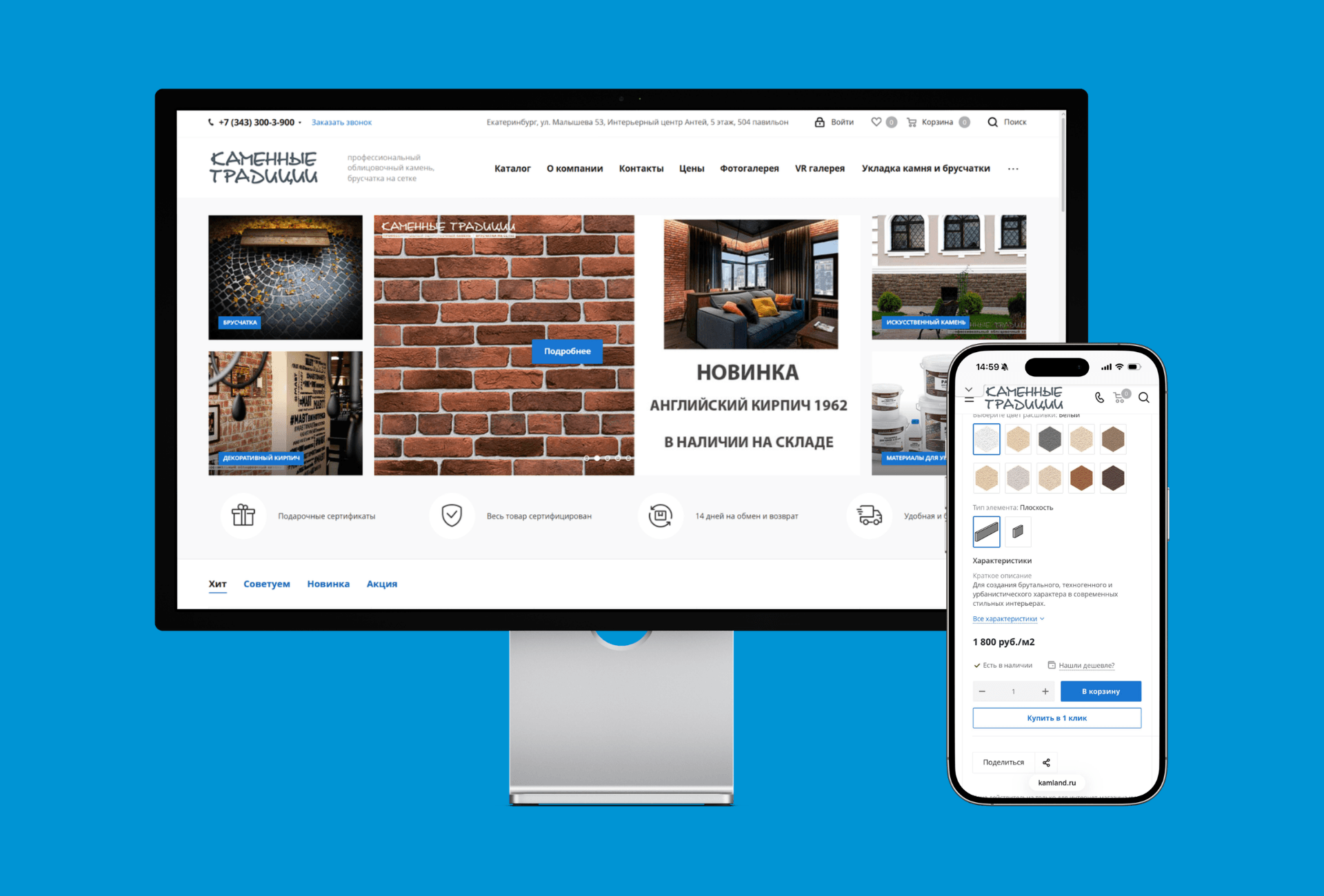 Каменные Традиции — производитель декоративного искусственного камня и облицовочного кирпича на Урале. Компания развивает интернет-магазин и офлайн-продажи, включая шоурум в БЦ Антей в Екатеринбурге.
