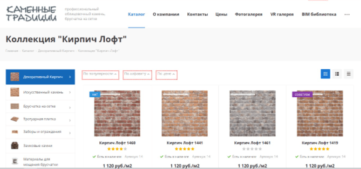 В результате переноса на чистый шаблон, была создана грамотная структура сайта, созданы фильтры по цветам расшифки, фактуре и другим важным характеристикам. Настроен выбор и возможность заказа по типу элементов товаров (угол, плоскость и др.) Настроенные сопутствующие товары и скидки.