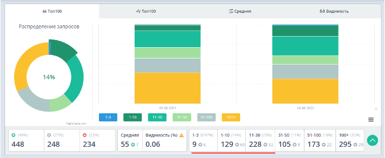 С момента запуска проекта в рамках заключённого договора мы начали покупку ссылок на биржах. Продолжаем и дальше наращивать ссылочную массу для улучшения позиций сайта.