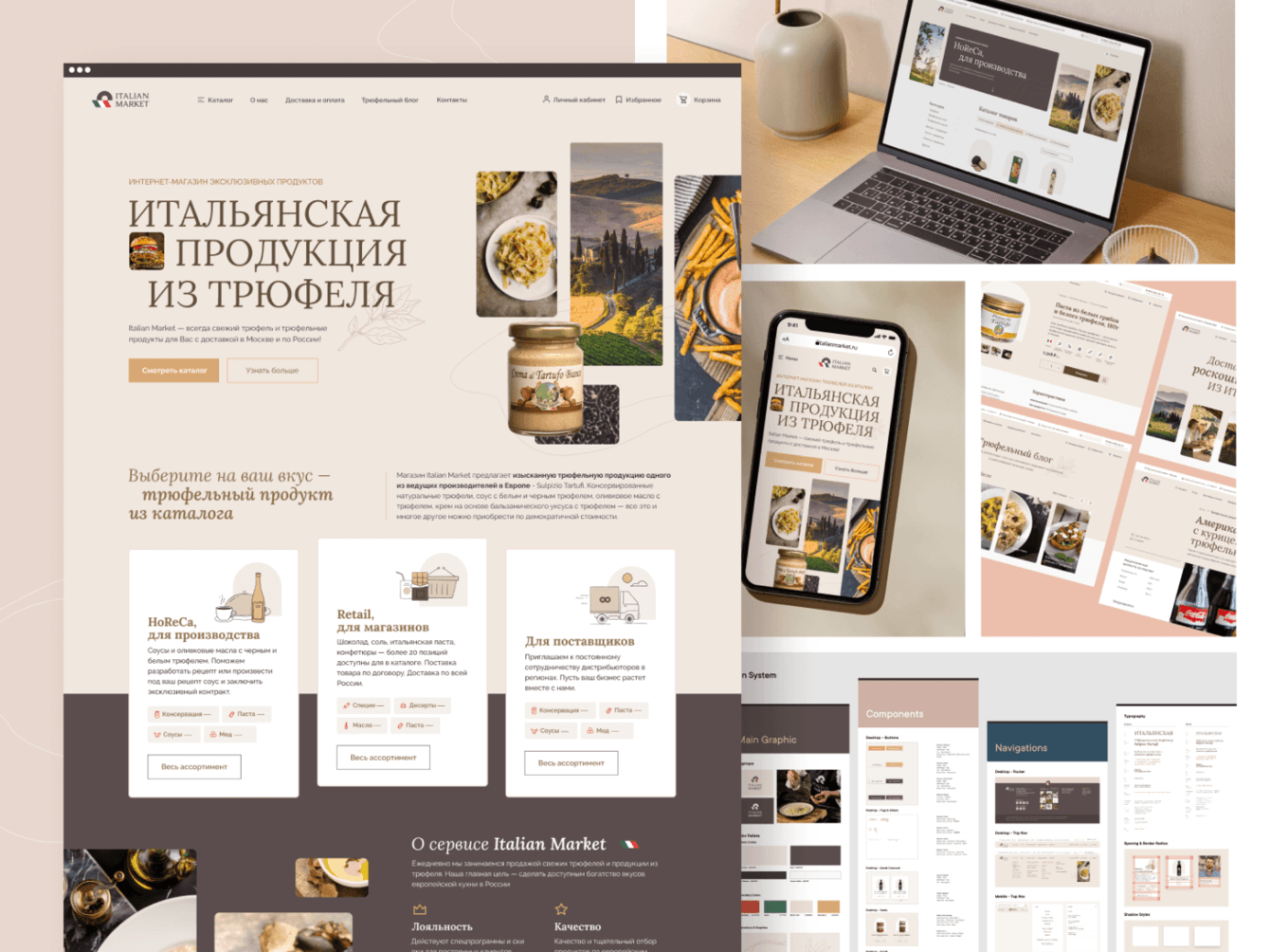 Разработать интернет-магазин с уникальным дизайном, который передает неповторимую культуру Италии. А также организовать продажу товаров для HORECA, Retail и оптовых поставщиков.