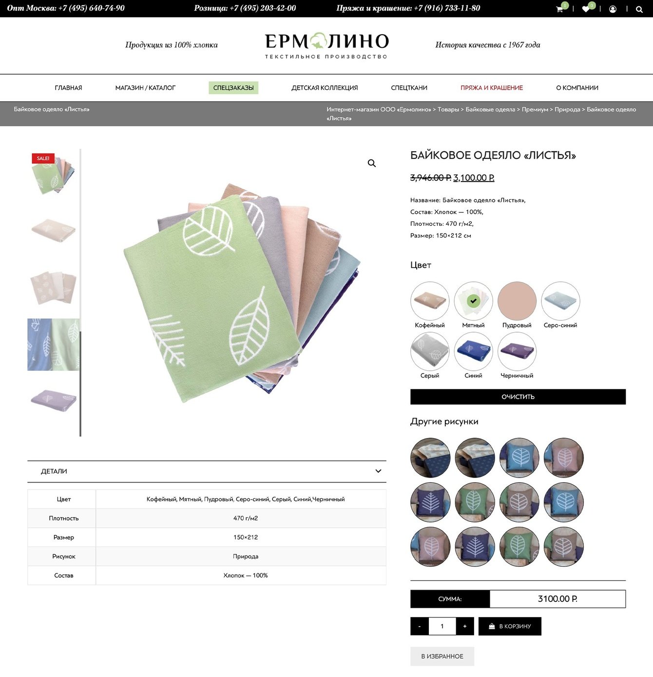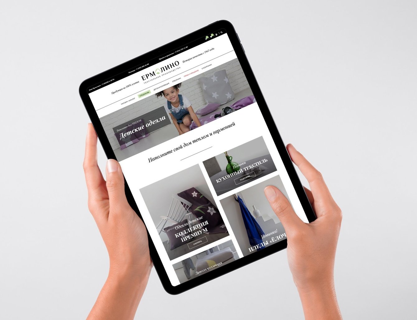Разработка сайта интернет-магазина известного бренда байковых одеял «Ермолино» стала одним из наших ключевых проектов. Продукция компании, включающая одеяла и домашний текстиль, известна многим еще со времен Советского Союза — тогда практически у каждого ребенка было байковое одеяло с фирменным «ермолинским» геометрическим узором. Сегодня же товары, выпускающиеся под брендом «Ермолино», вышли на новый уровень, и выглядят по-европейски современно. Компания активно развивается, в ее ассортименте появились новые коллекции с модными флористическими мотивами, тематические серии, актуальный текстиль для кухни, соответственно, и сайт требовал обновления.
