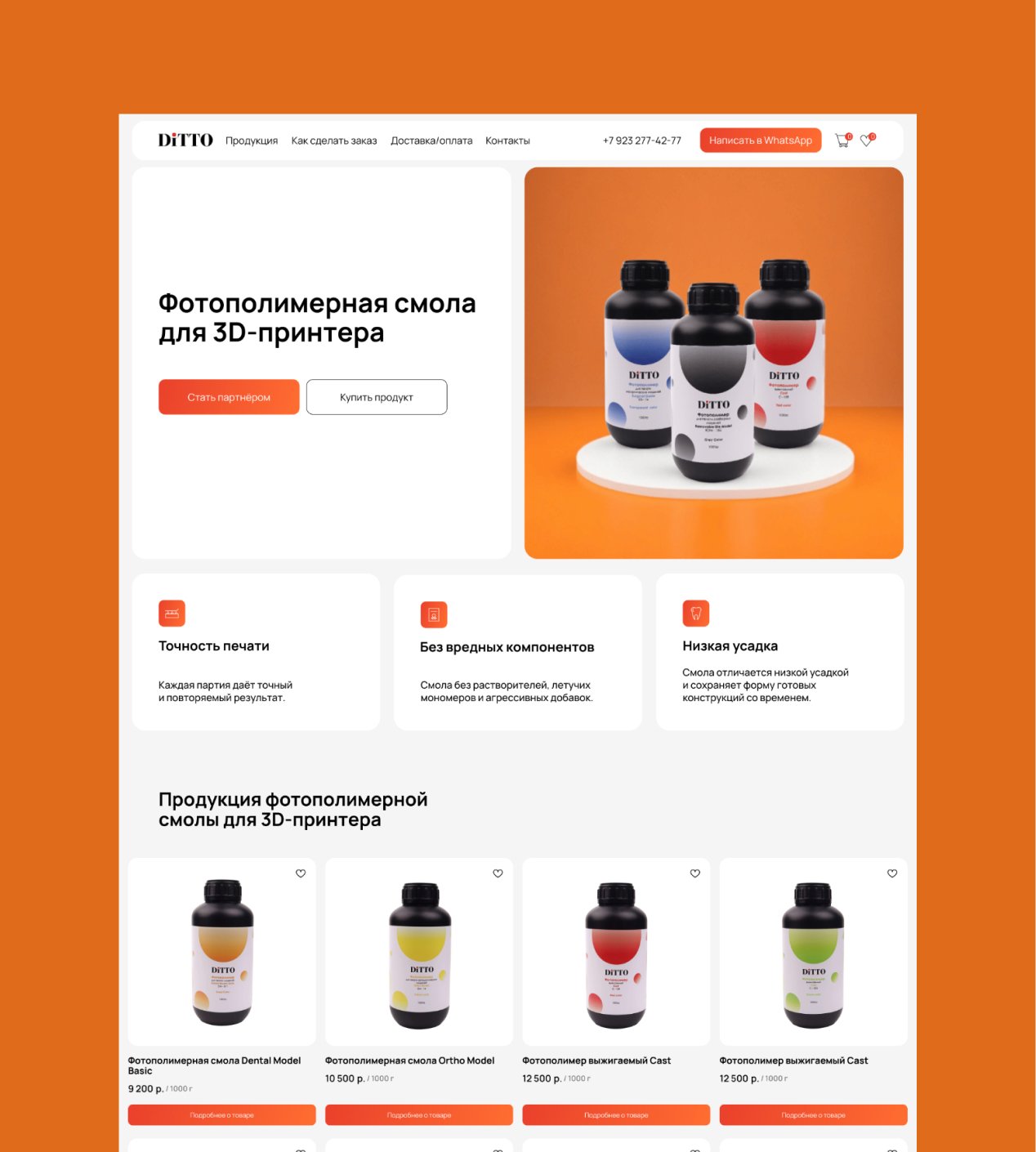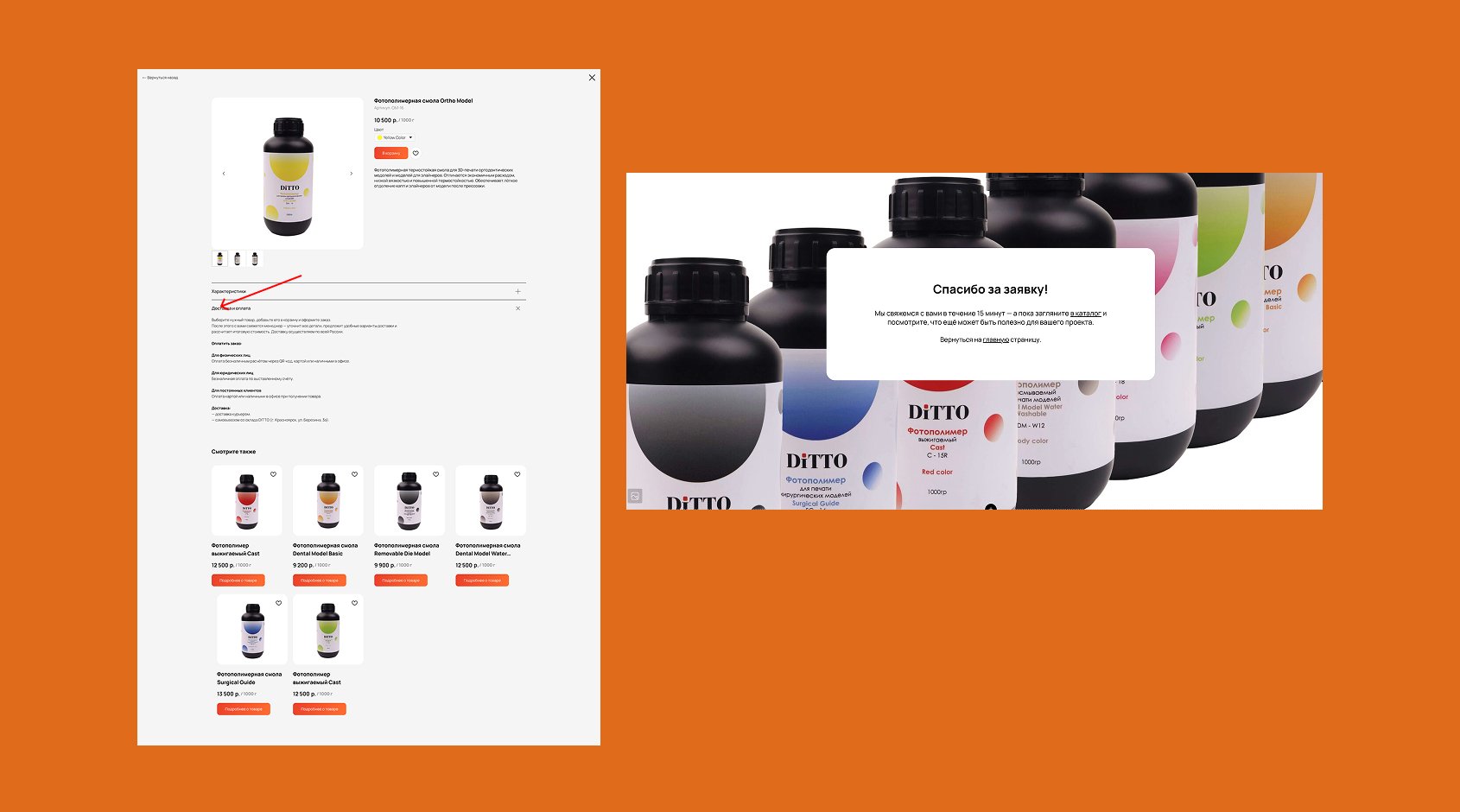 Компания DITTO продаёт фотополимерную смолу для 3D-принтеров. Это технический продукт, где решение принимается не эмоционально, а по параметрам: вязкость, прочность, совместимость с моделями оборудования, особенности эксплуатации.