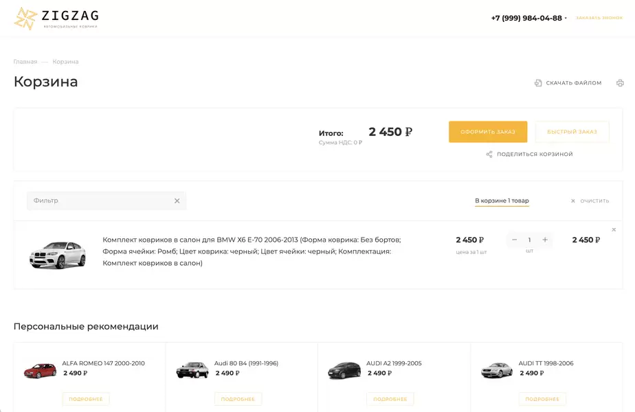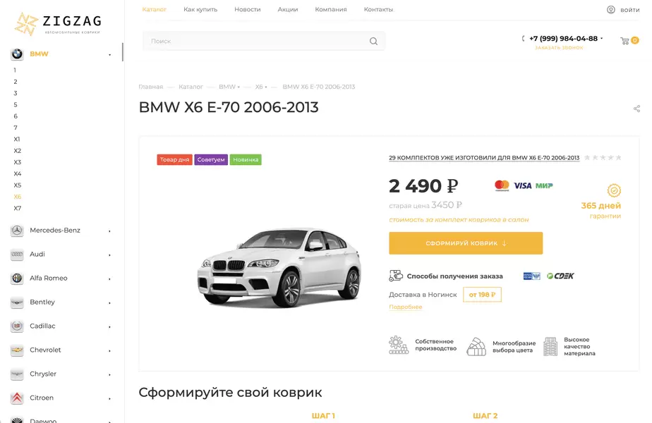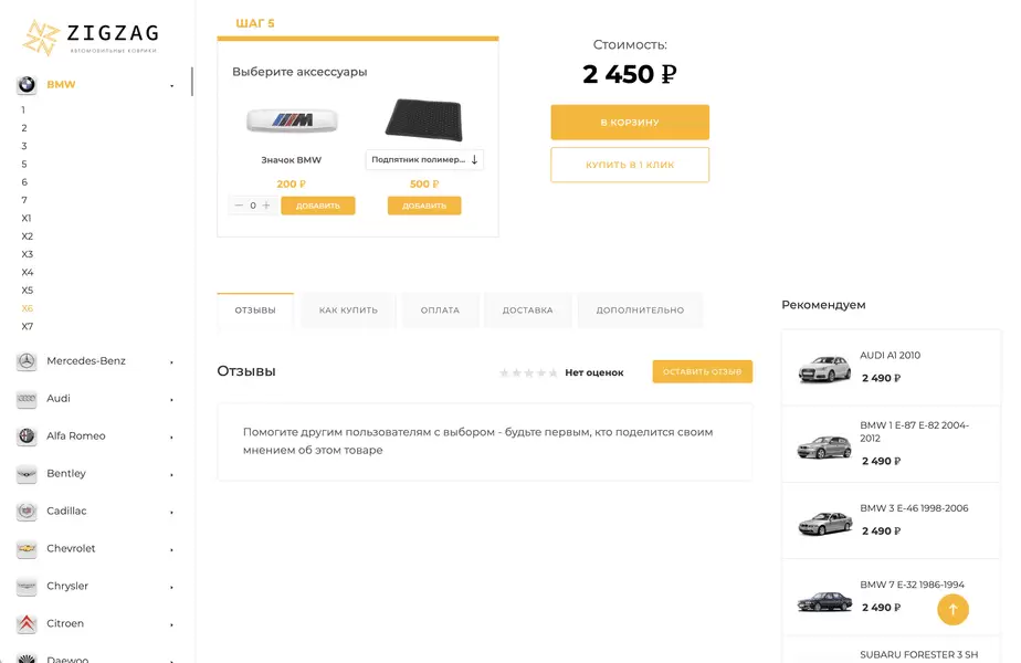Необходимо было разработать современный интернет-магазин для компании, занимающейся производством Eva-ковриков для автомобилей. Основная задача была сделать современный интернет-магазин, которым было бы легко пользоваться посетителям в сети интернет на любых устройствах, и с минимальными действиями совершать покупки. Проведя анализ конкурентов, Заказчику были предложены доработки шаблона, необходимые в этой сфере бизнеса и для дальнейшего продвижения.