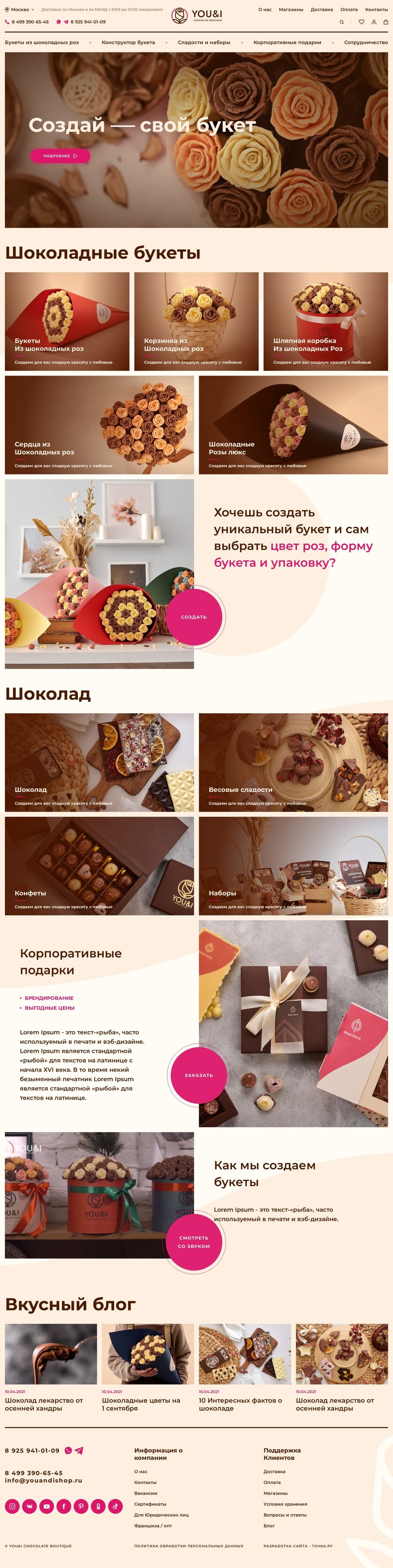 Разработать новую версию интернет-магазина для франшизы уникальных шоколадных букетов You&i.