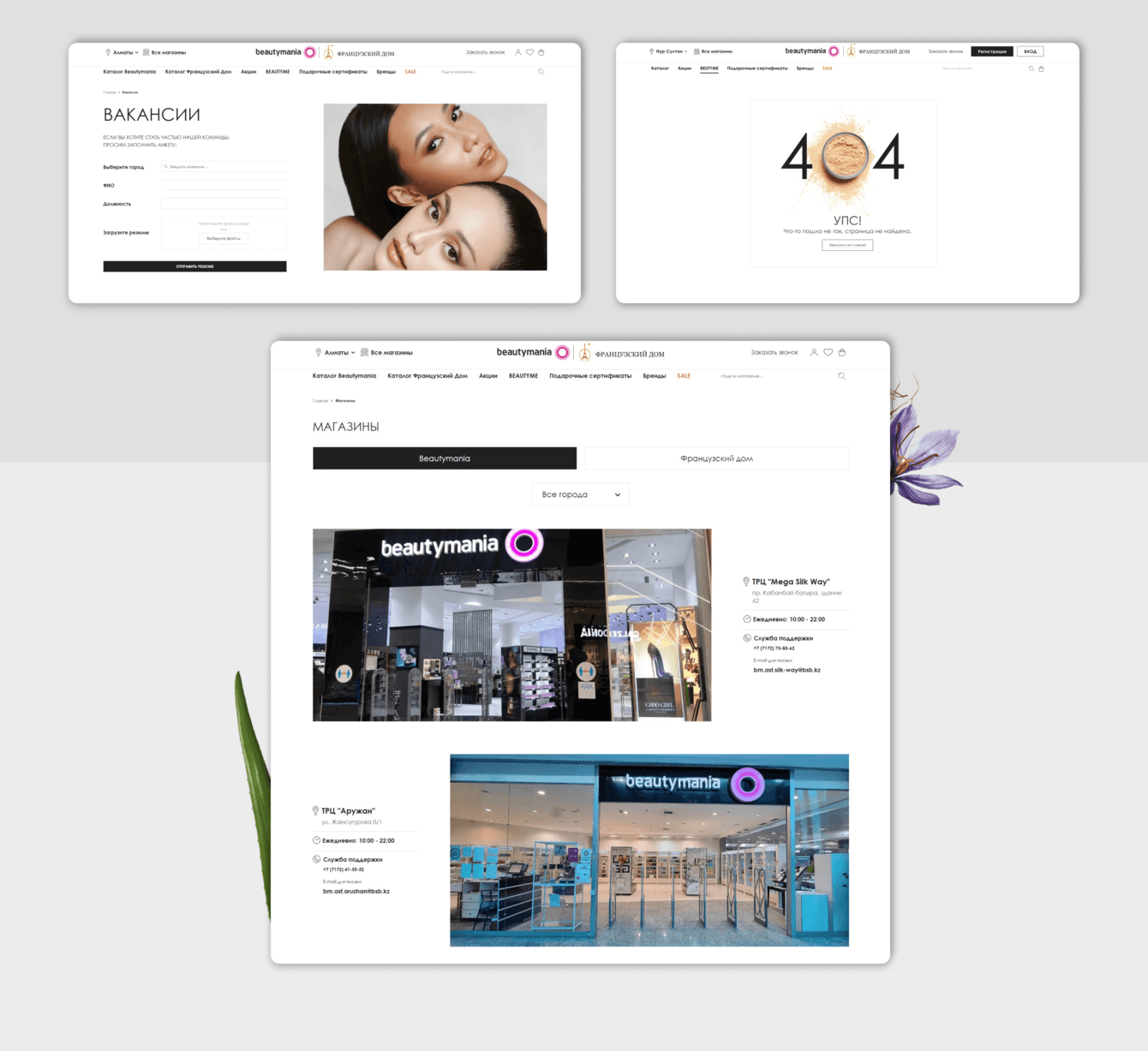 Было принято решение найти разработчиков для исправления ошибок на сайте Beautymania. Заказчик выбирал подрядчиков среди IT-компаний из разных стран. Остановились на нашей компании, входящей в ТОП-3 рейтинга Беларуси по разработке интернет-магазинов. В процессе работы стало очевидно, что для такой крупной растущей компании эффективнее разработать новый сайт с двумя каталогами — Beautymania и Французский Дом. Так клиент одновременно решил бы все вопросы по автоматизации двух сетей магазинов, смог бы синхронизировать товары и заказы с 1С и CRM Битрикс24.