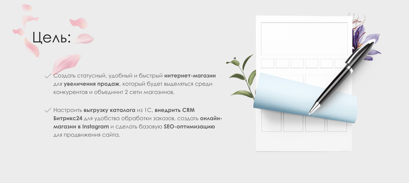 • Внедрить и интегрировать сайт с CRM Битрикс24 для упрощения обработки заказов