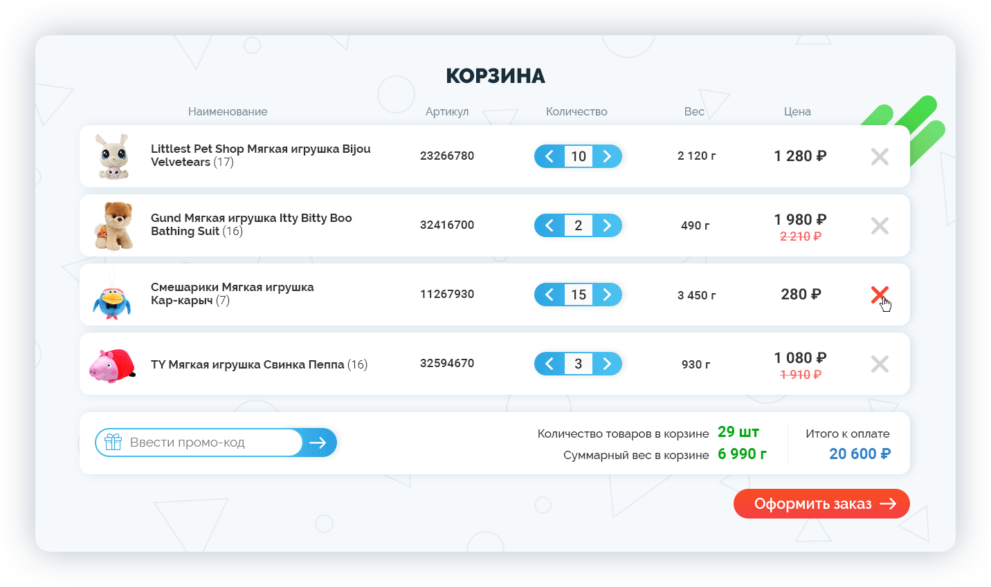 - наличие кнопки «Оформить заказ»;