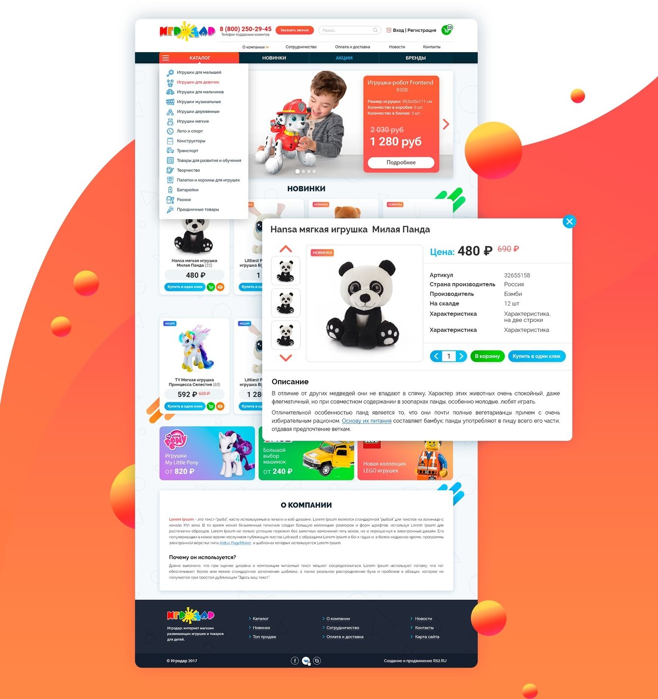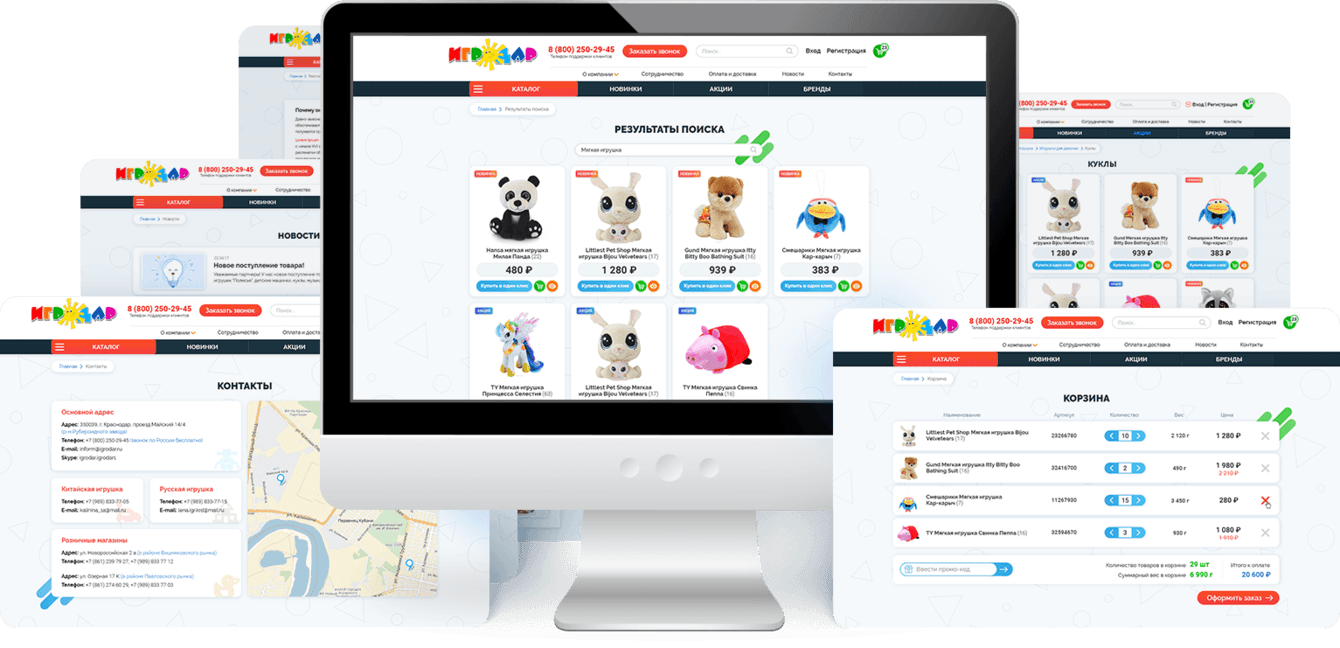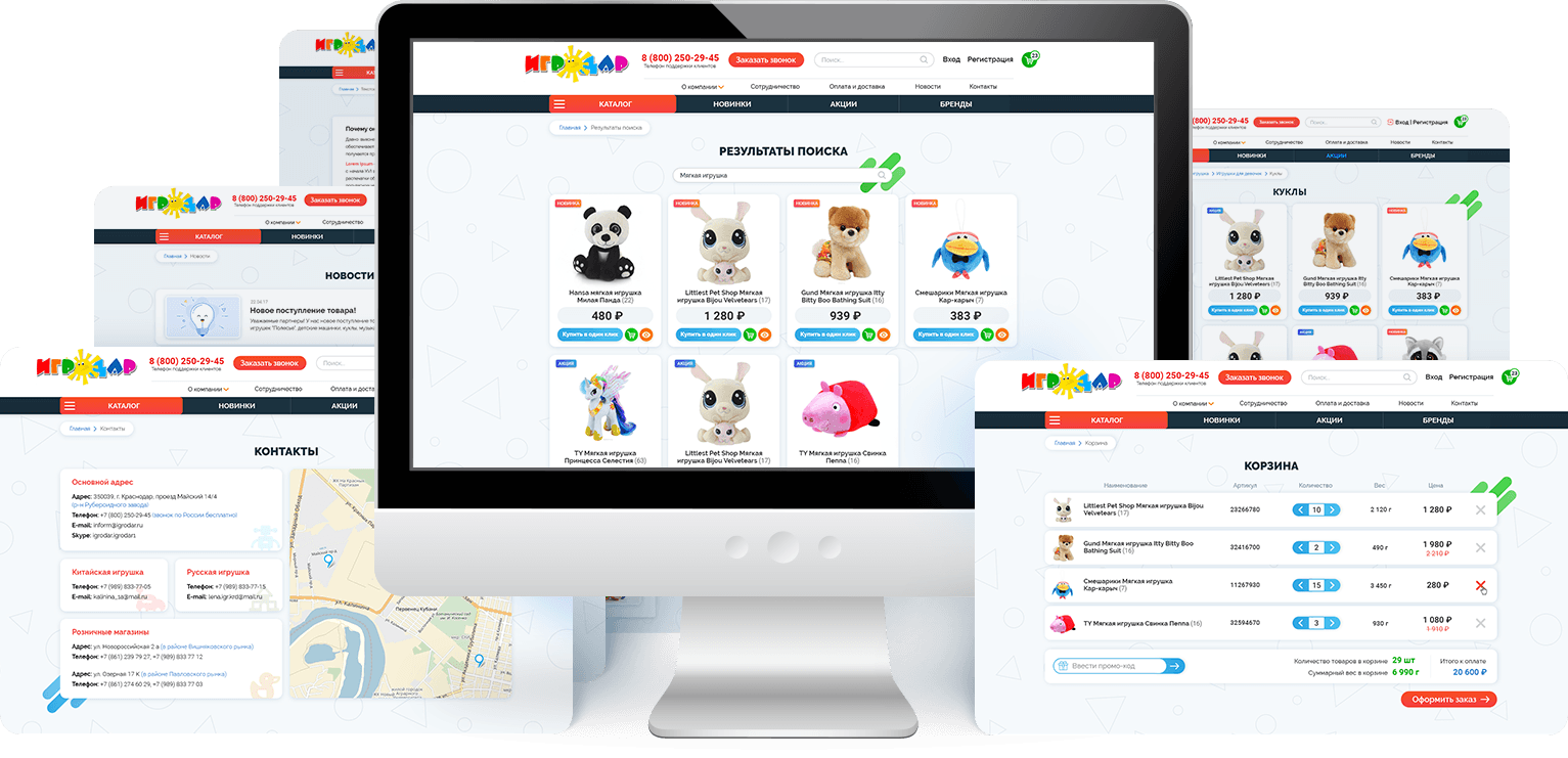 Карточка товара содежит максимум полезной информации: цена, производитель, размеры, описание, характеристики. Фото в трёх проекциях поволяют рассмотреть игрушку со всех сторон. Отдельно показана информация об остатке товара на складе, способах доставки и центрах выдачи. Всё вышеперечисленное позволяет пользователю быстрее сделать свой выбор и совершить покупку.