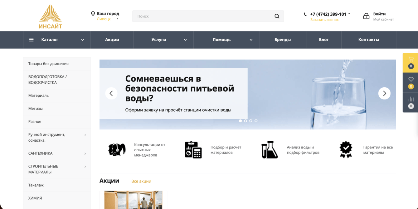 Нашей командой был разработан интернет-магазин на базе готового решения от Аспро и переверстаны страницы согласно пожеланиям заказчика