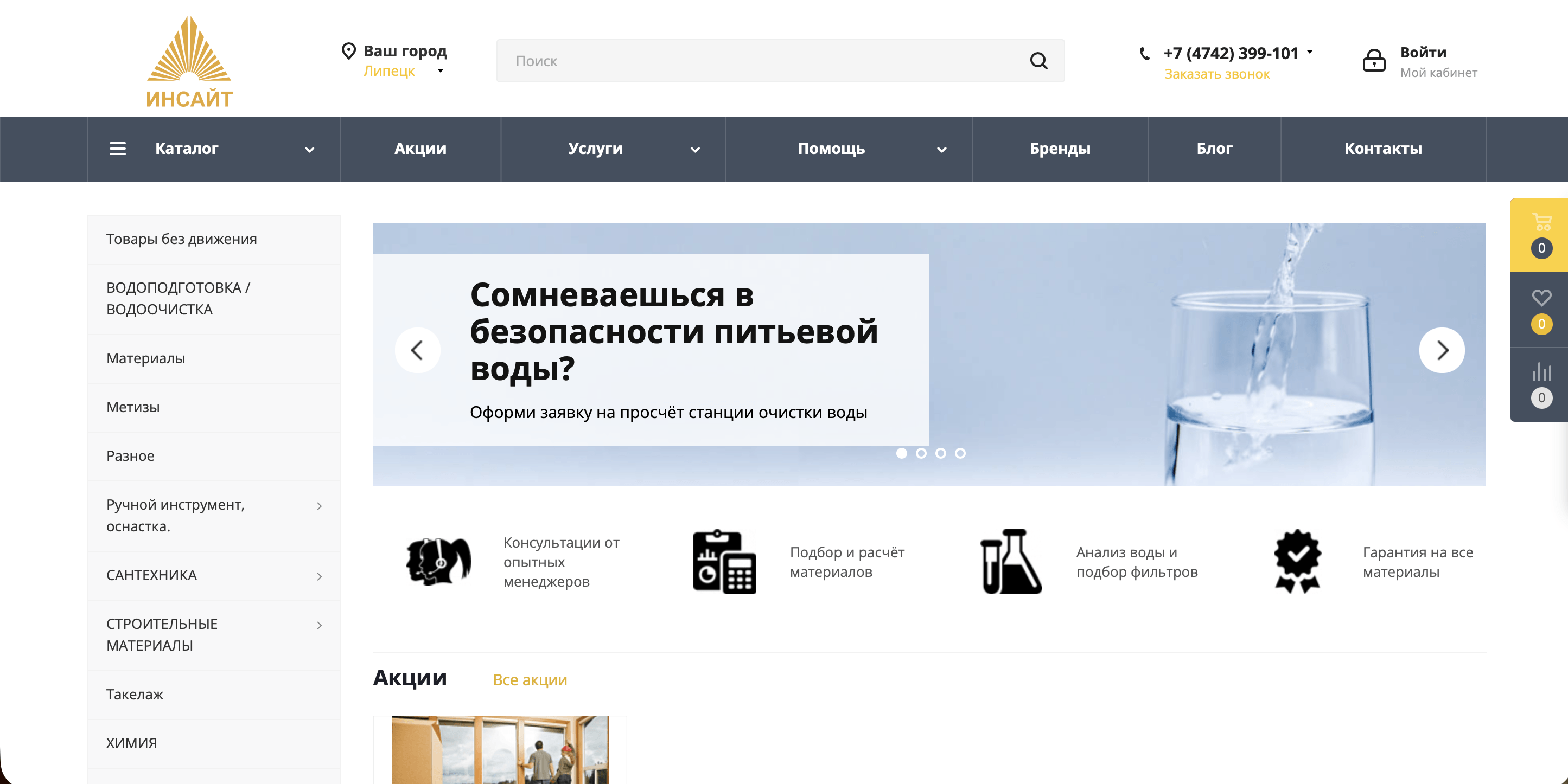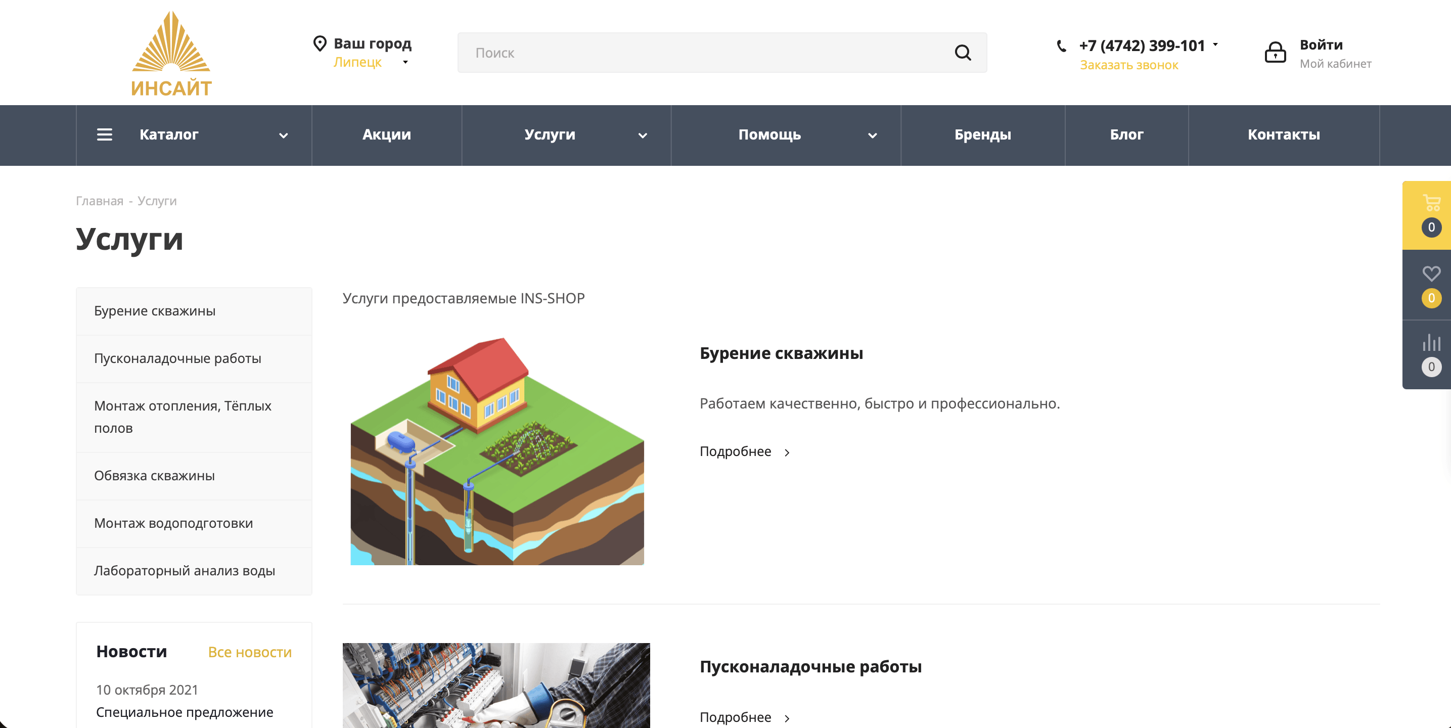 "Инсайт" - компания, предоставляющая услуги в сфере проектирования, водоподготовки и монтажа сантехнического и водопроводного оборудования.