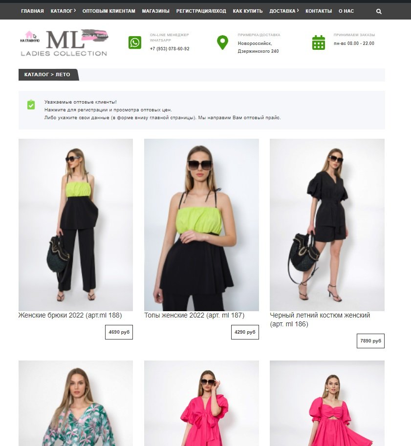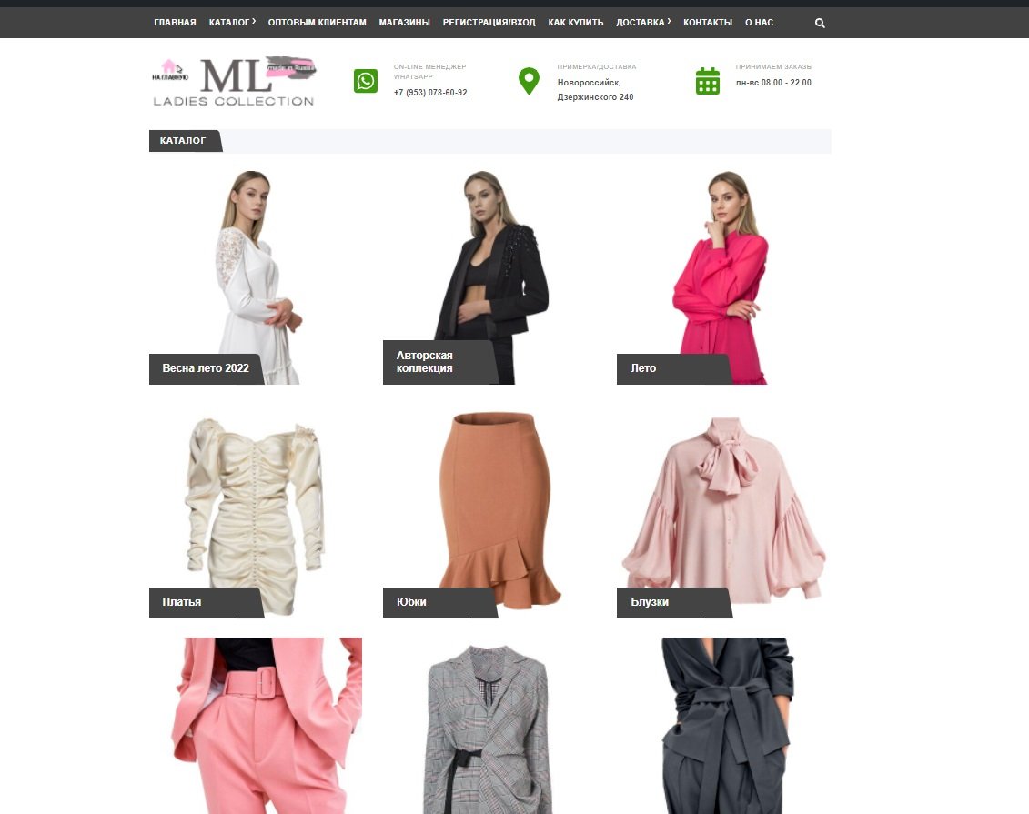 Создание каталога товаров/интернет магазина бренда женской одежды. С возможностью заказа товаров, обратной связи. Контактный блок,банеры,каталог товаров,вставка видео,форма для получения прайса в подвале сайта. Станицы с направлениями деятельности,оплатой,доставкой,контакты.