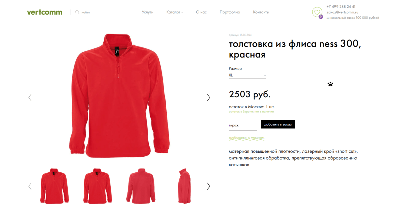 Присутствует подробное описание и указание стоимости, остаток товара на складе в России и Европе. Используем торговые предложения 1С-Битрикс.