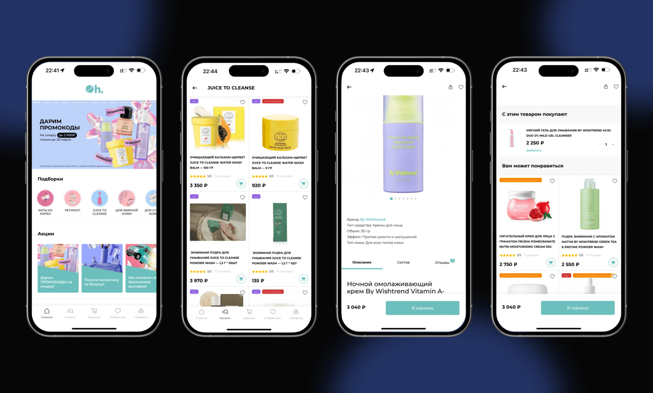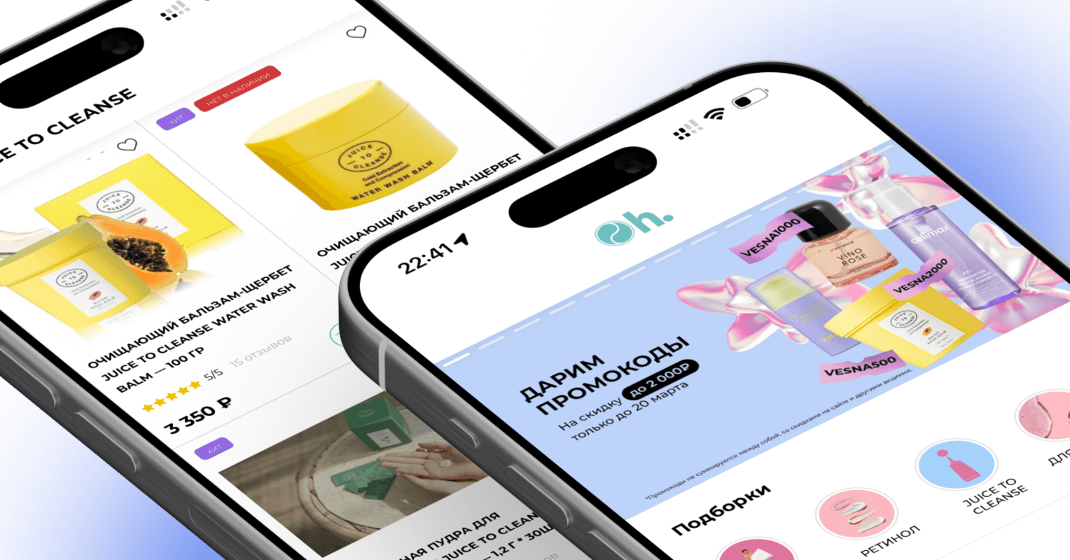 Oh Beautybar — проект, в котором нам важно было учесть весь набор e‑commerce‑функций, но при этом сделать мобильный продукт лёгким, быстрым и приятным в использовании. Мы заложили надёжную архитектуру, адаптированную под регулярные маркетинговые активности и высокий пользовательский трафик.