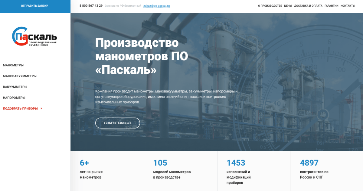 Было необходимо создать интернет-магазин для производителя манометров. Сайт должен иметь удобную административную часть, уникальный, удобный и современный дизайн, все возможности интернет-магазина