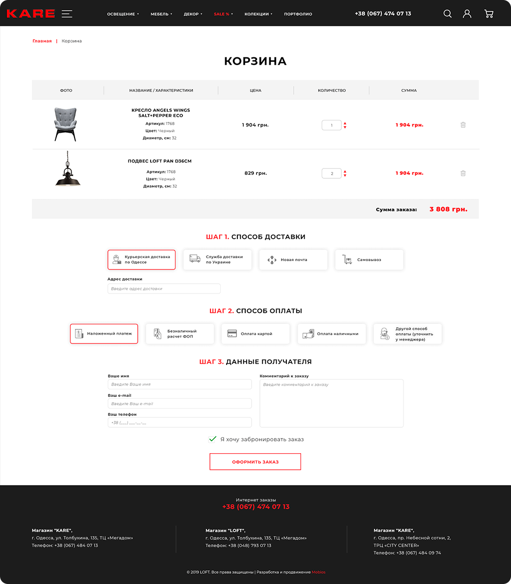 - Страница корзины