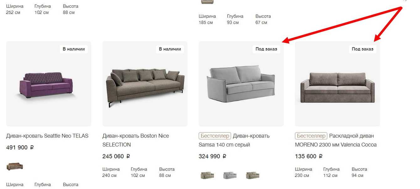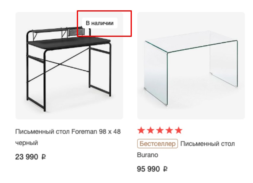Изначально в каталоге сайта нашего клиента использовались ярлыки «В наличии» для обозначения доступных товаров: