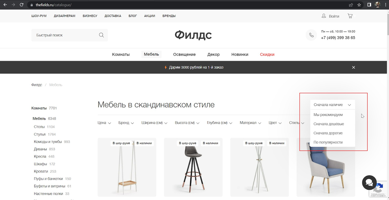 В нашей работе по сопровождению интернет-магазина дизайнерской мебели thefields.ru мы взяли на себя мониторинг стабильности работы сайта, оперативное устранение любых багов и реализацию необходимых доработок, и мелких, и крупных.