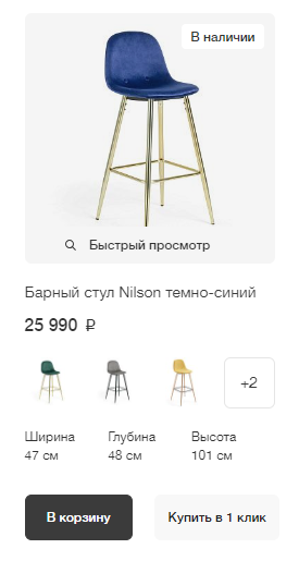 Наша задача заключалась в том, чтобы расширить отображение «Товары в других цветах» на листинги каталога, страницы тегов, страницы брендов, а также на разделы «Новинки» и «Скидки». Дизайн предусматривал аккуратное скрытие множества цветовых вариантов за вкладками с обозначениями «+3» или «+7», в зависимости от количества доступных цветов. При нажатии на эти вкладки пользователю открывались все возможные варианты цвета, и выбор конкретного приводил его на соответствующую страницу товара.
