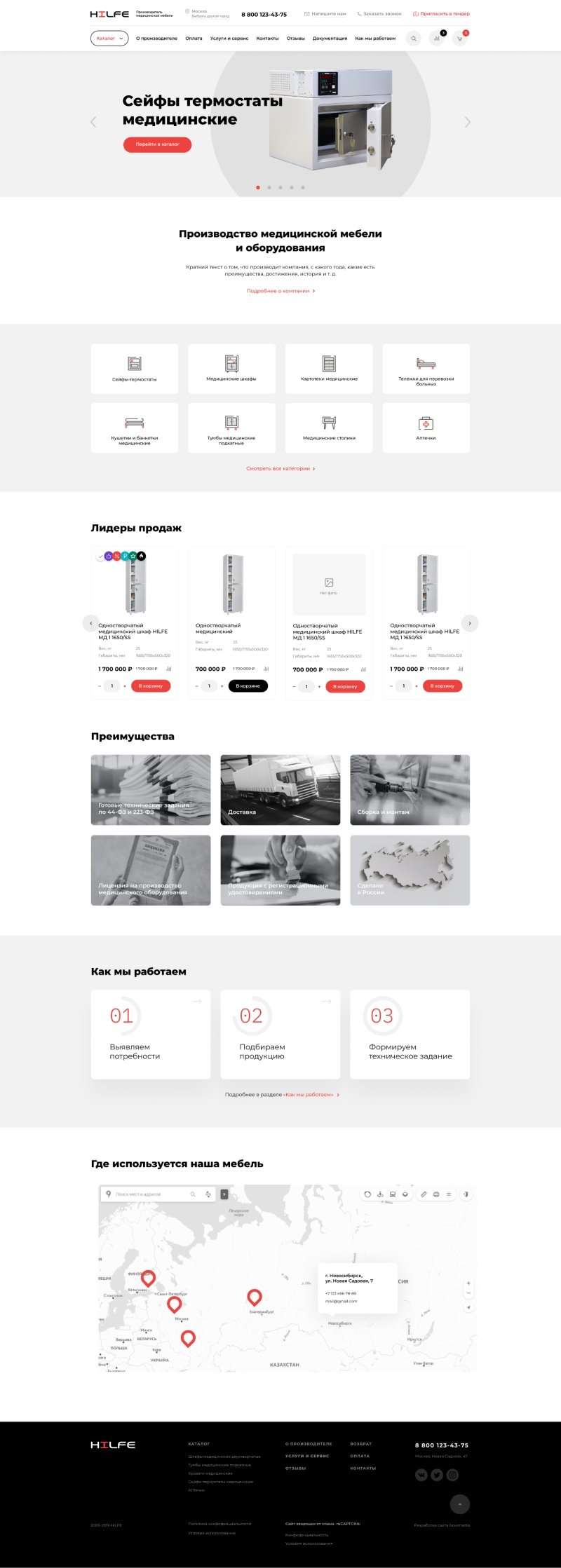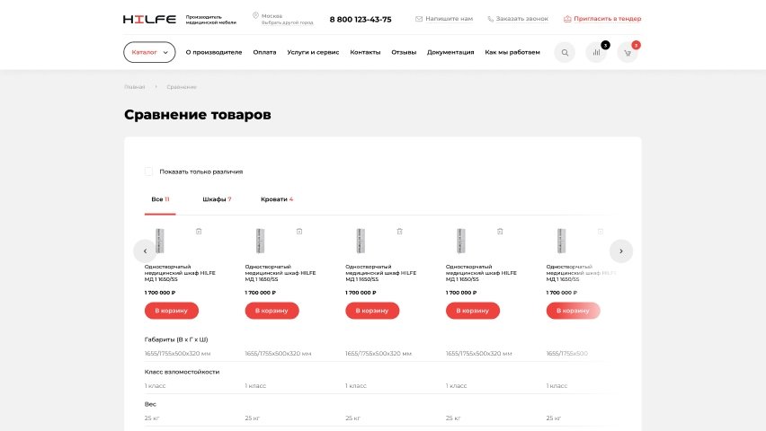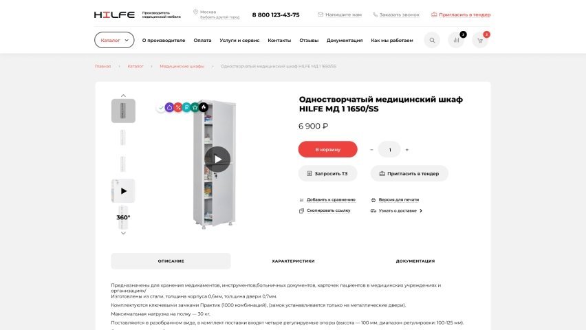 Требовалось разработать монобрендовый интернет-магазин для производителя медицинской мебели, целевой аудиторией которого являются отделы закупок и тендерные комитеты.