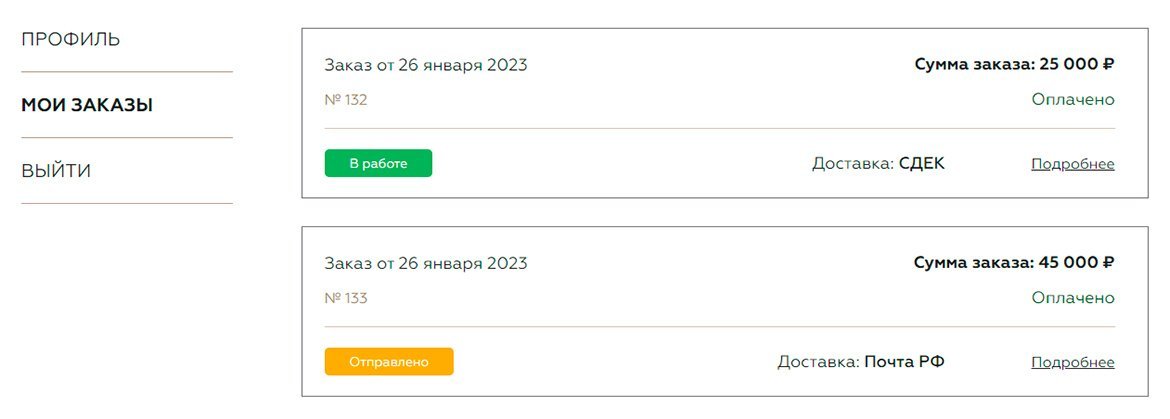 Разработали личный кабинет пользователя, в котором можно посмотреть подробную детализацию по истории заказов, а также управлять данными о доставке