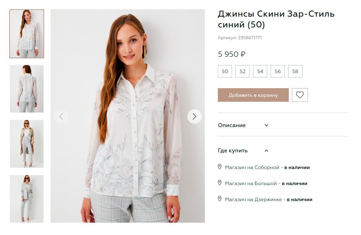 Карточка товара соответствует всем современным трендам веб-дизайна: