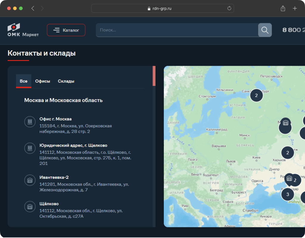 В процессе реализации проекта появился функционал, который отличает «ОМК Маркет» от других интернет-магазинов в отрасли.