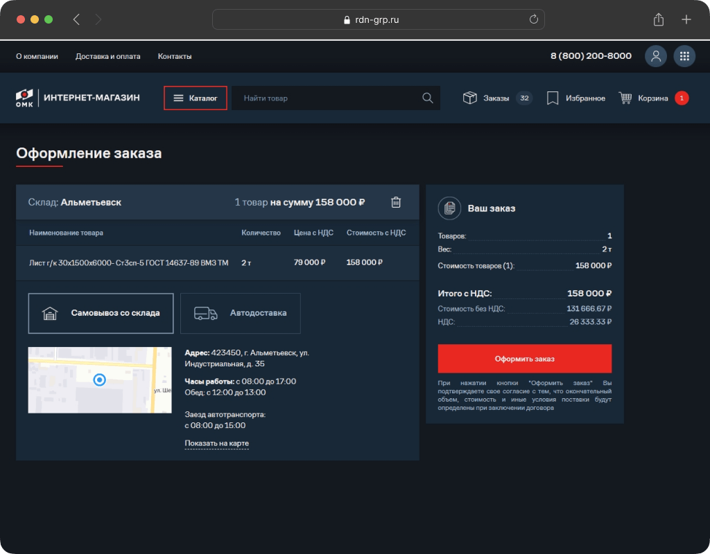 - Каталог продукции. Металлопродукция, которая есть в наличии, отображается в режиме онлайн.