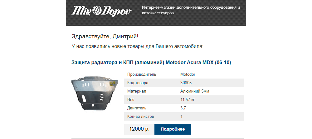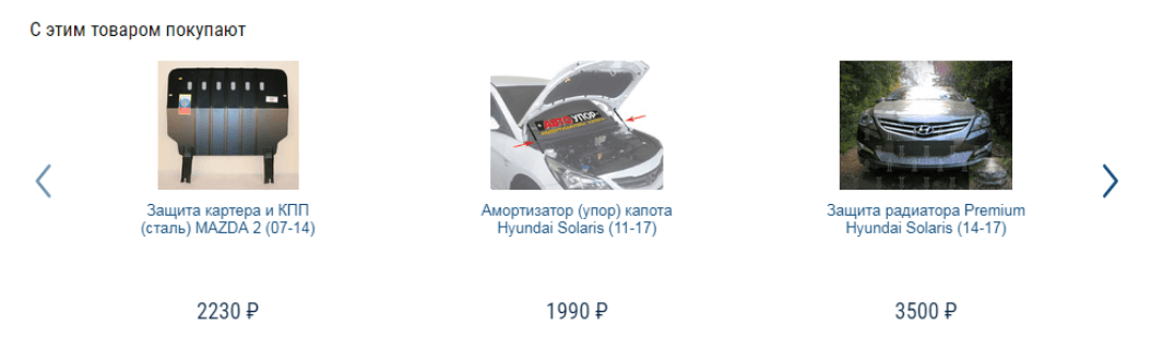 На странице товара внедрили модули рекомендаций и просмотренных товаров. Модуль рекомендаций - подбирает товары, анализируя все заказы пользователей и другие товары по этому же кузову.