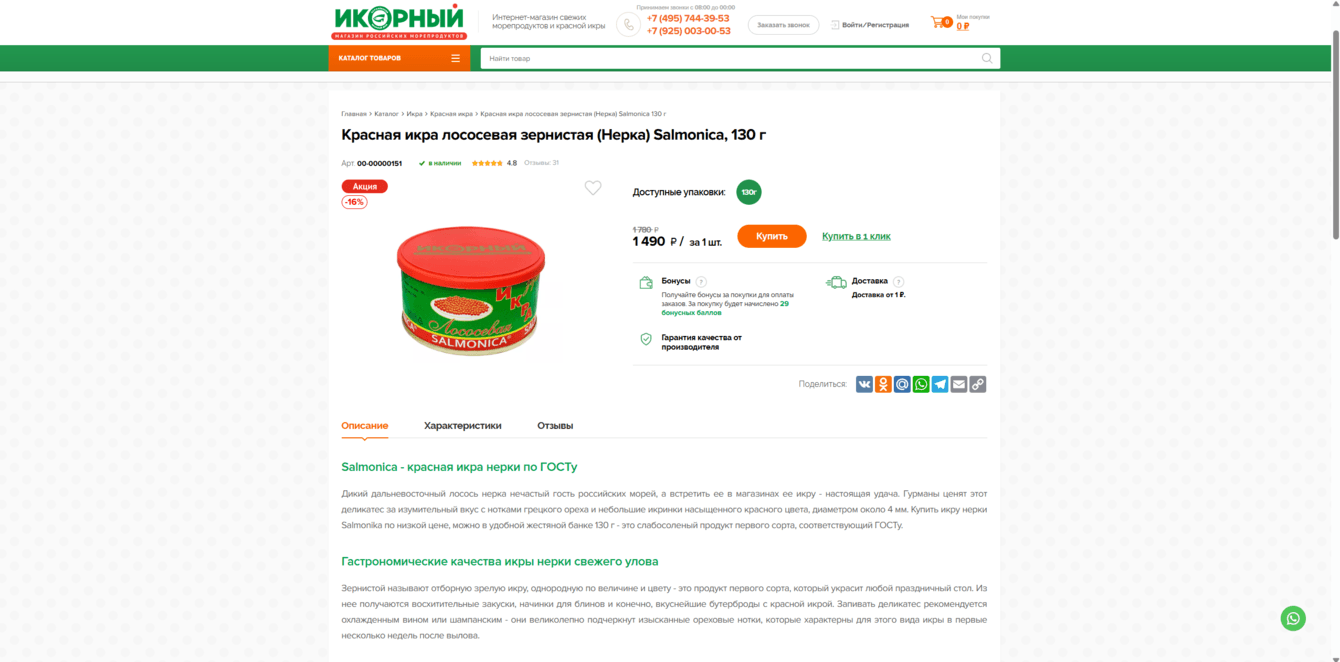 Интернет-магазин компании «Икорный» стал удобной и надёжной платформой для презентации и продажи морепродуктов. Удобный каталог, подробные описания и информация о преимуществах повысили доверие клиентов. Сайт способствовал увеличению числа заказов и укреплению имиджа компании как поставщика высококачественных морепродуктов с Дальнего Востока.
