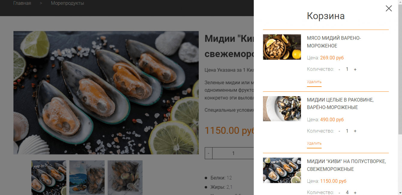 На скриншоте: Корзина с товарами