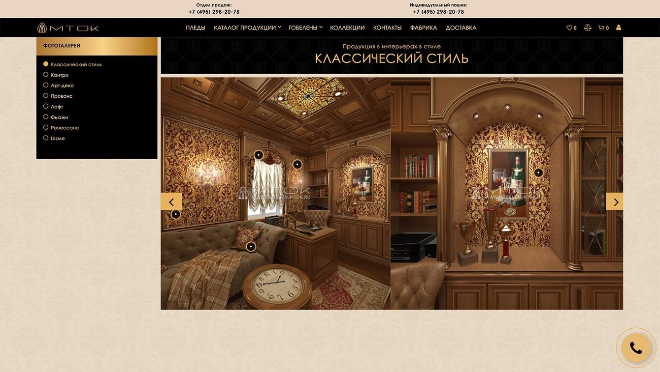 Новый сайт подчеркнул многообразие ассортимента, актуализировал его и расширил целевую аудиторию за счет привлечения новых розничных и оптовых покупателей — ценителей традиционных гобеленовых тканей и изделий.