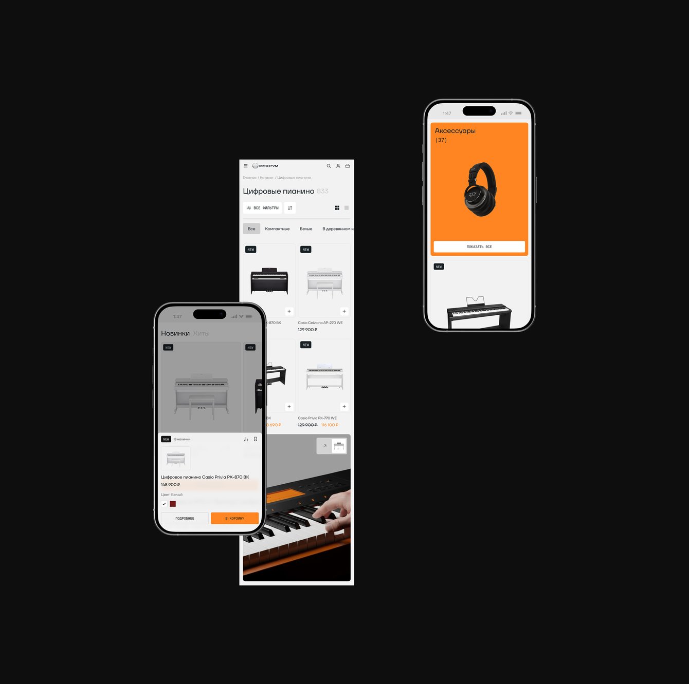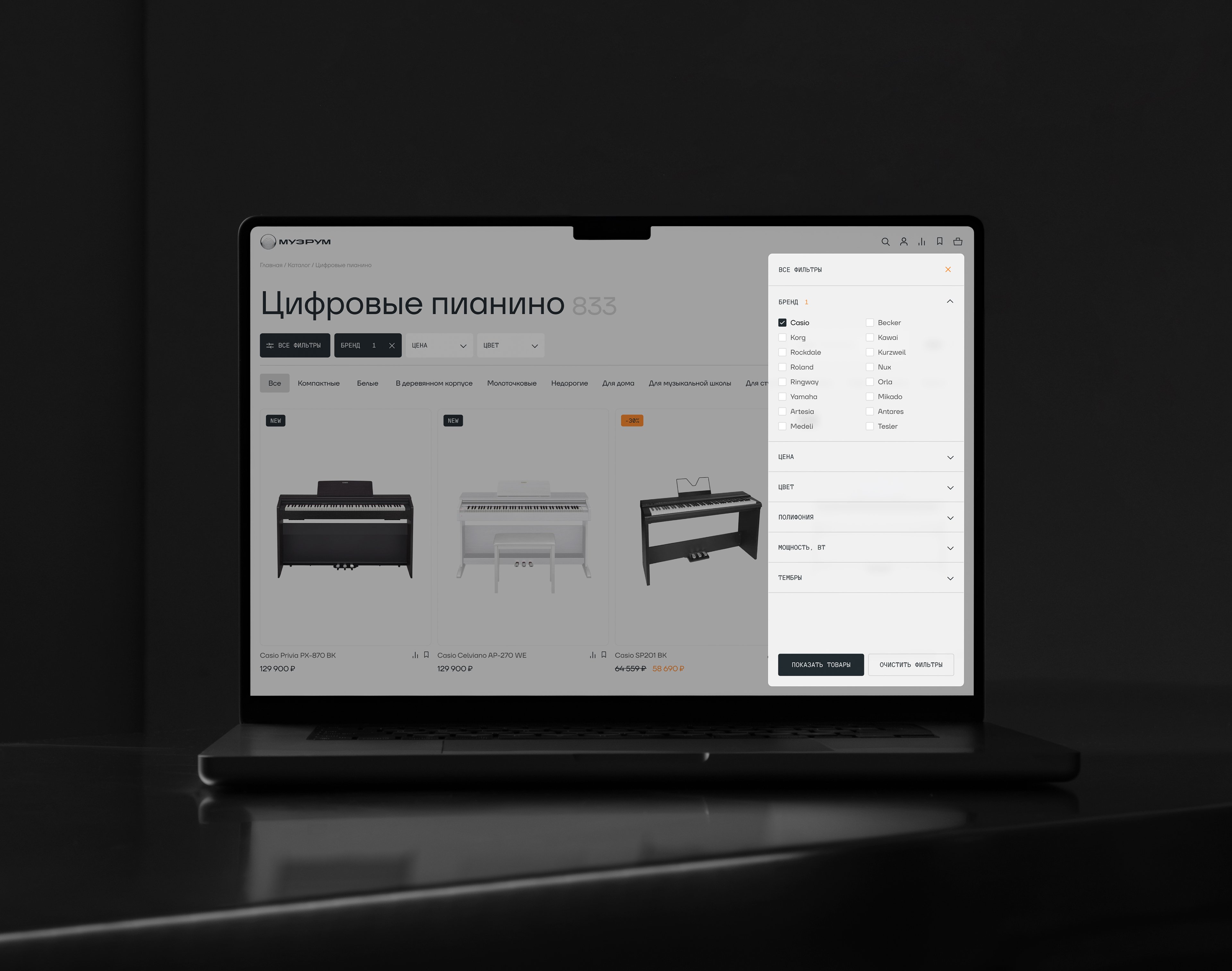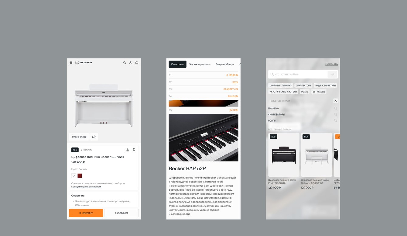 Музрум обратился к нам за редизайном и разработкой интернет-магазина. Ключевой задачей стало создание уникального дизайн-кода, который отражал бы характер бренда, его экспертизу и любовь к музыке, а также выделял компанию среди типовых e-commerce-решений на рынке.